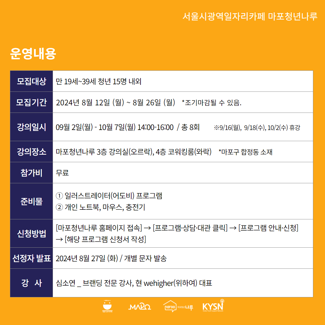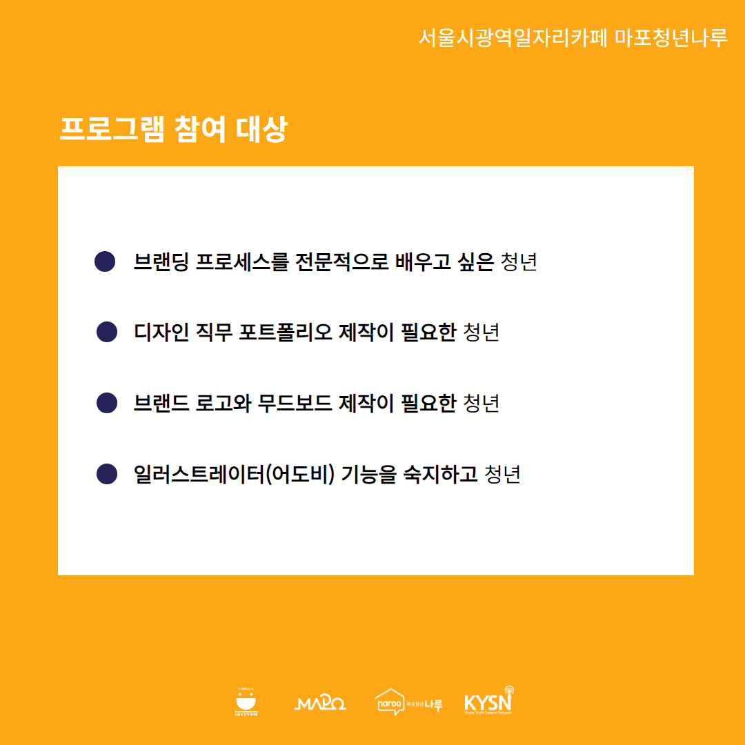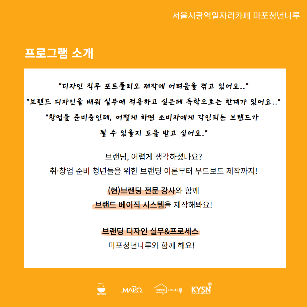 브랜딩을 필요로 하는 청년들을 위해 다시 한 번 나루에서 준비했어요 :)