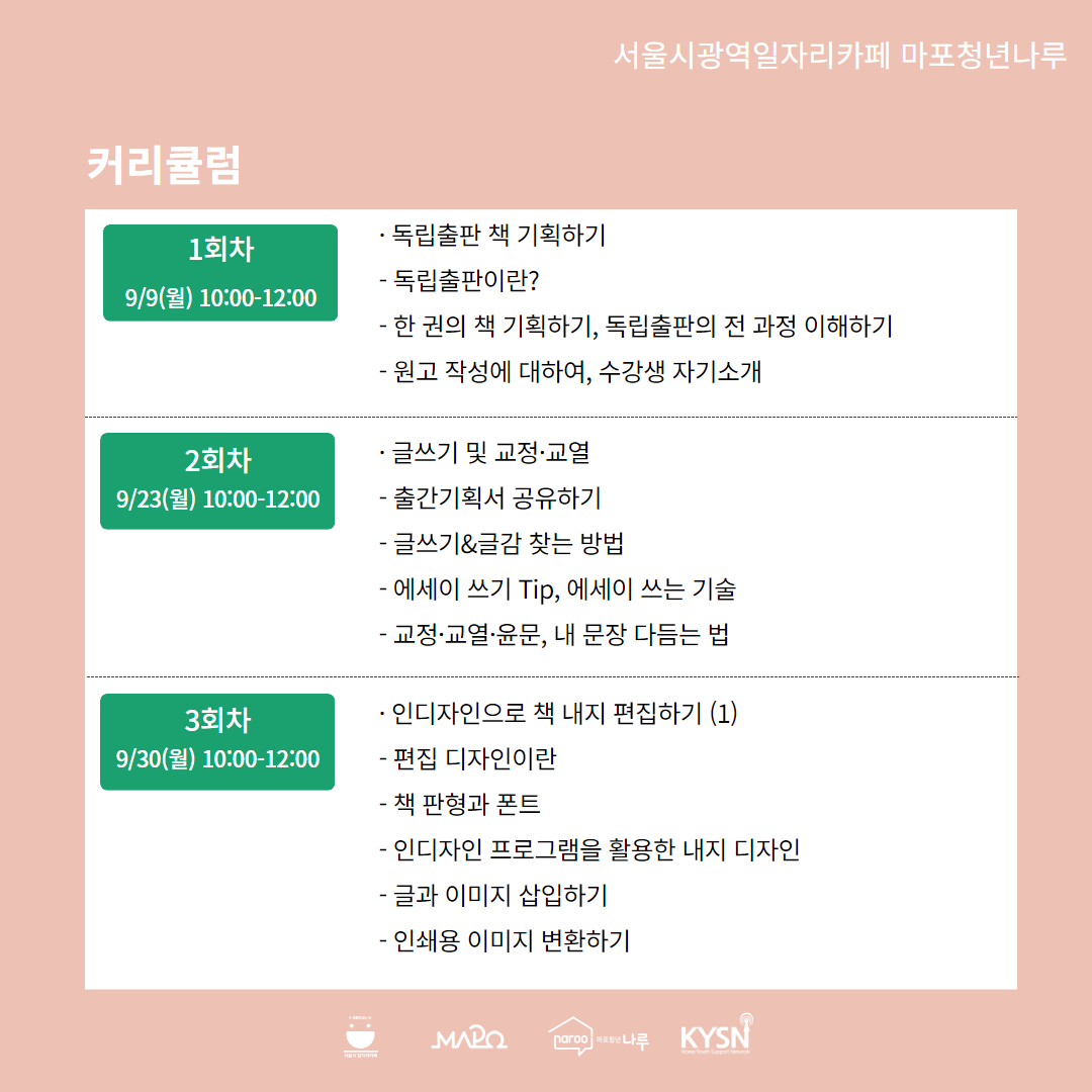 ✰ 일시: 9/9(월) ~ 10/28(월) 10:00-12:00 / 총 7회