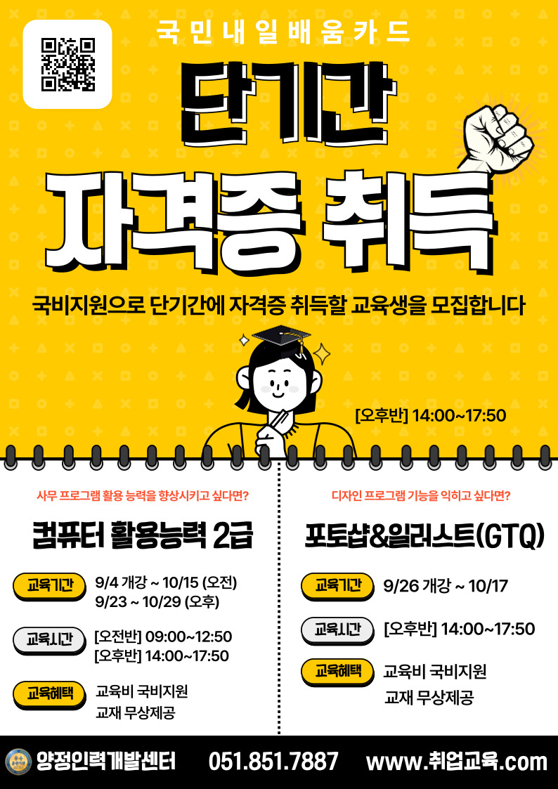 [2024 국민내일배움카드 단기간 자격증취득 과정안내]