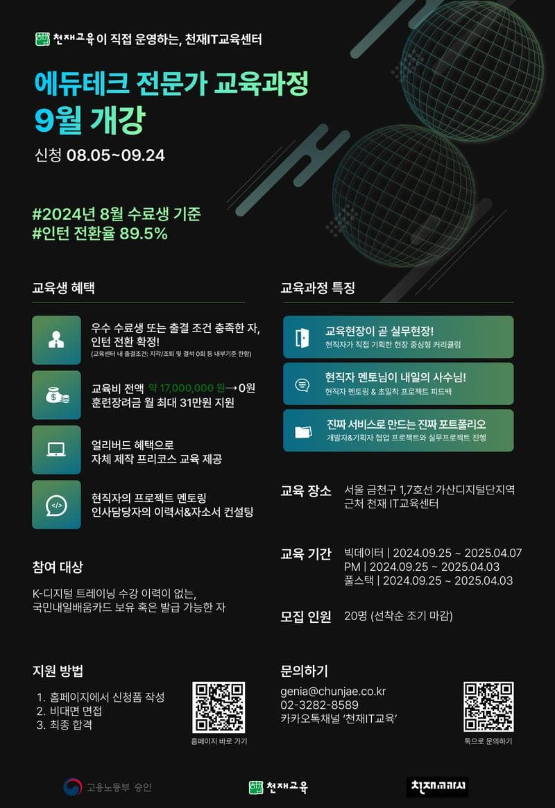 천재IT교육센터 에듀테크 전문가 9월 양성과정 모집
