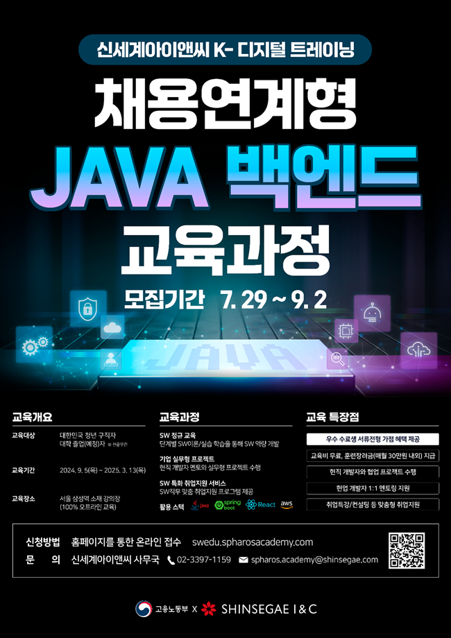 [개발자 취업] 신세계아이앤씨 JAVA 기반 백엔드 개발 과정 교육생 모집