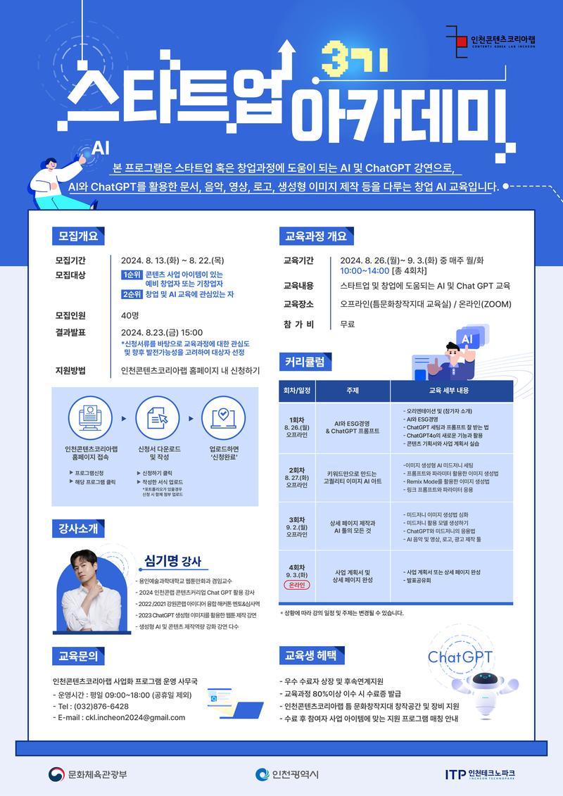 ▶교육문의 : 인천콘텐츠코리아랩 사업화 프로그램 운영사무국