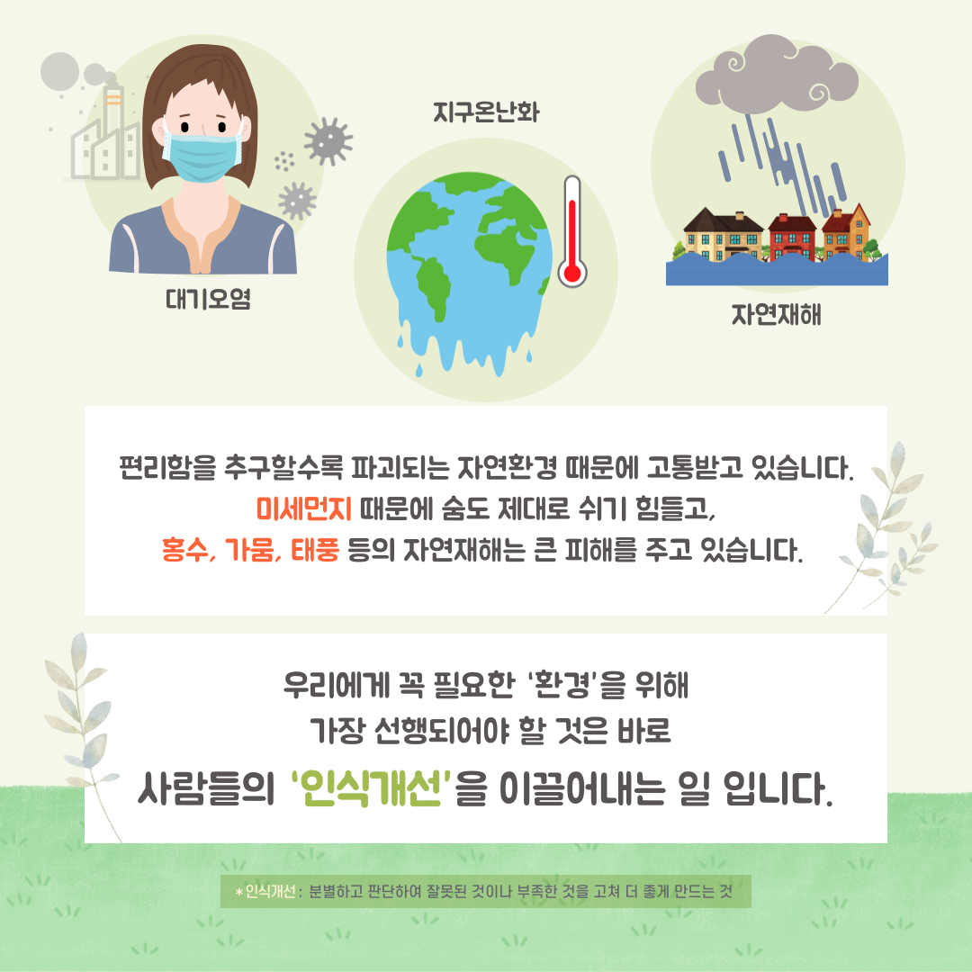 단순한 환경 활동을 넘어 사람들의 인식 개선을 통해 우리의 소중한 지구를 지켜봅시다!