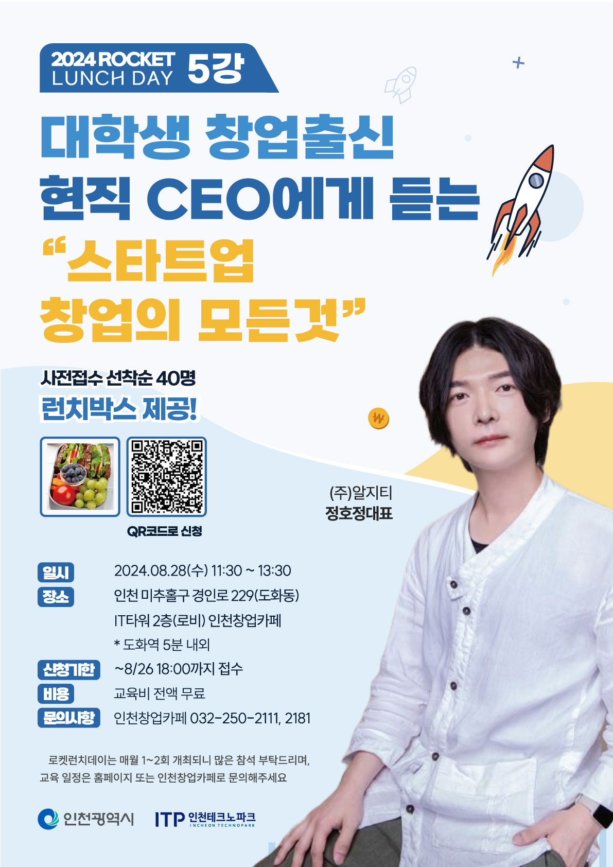 ※ 로켓 런치데이는 인천시가 주최하고 인천테크노파크가 주관하는 무료 강의입니다.