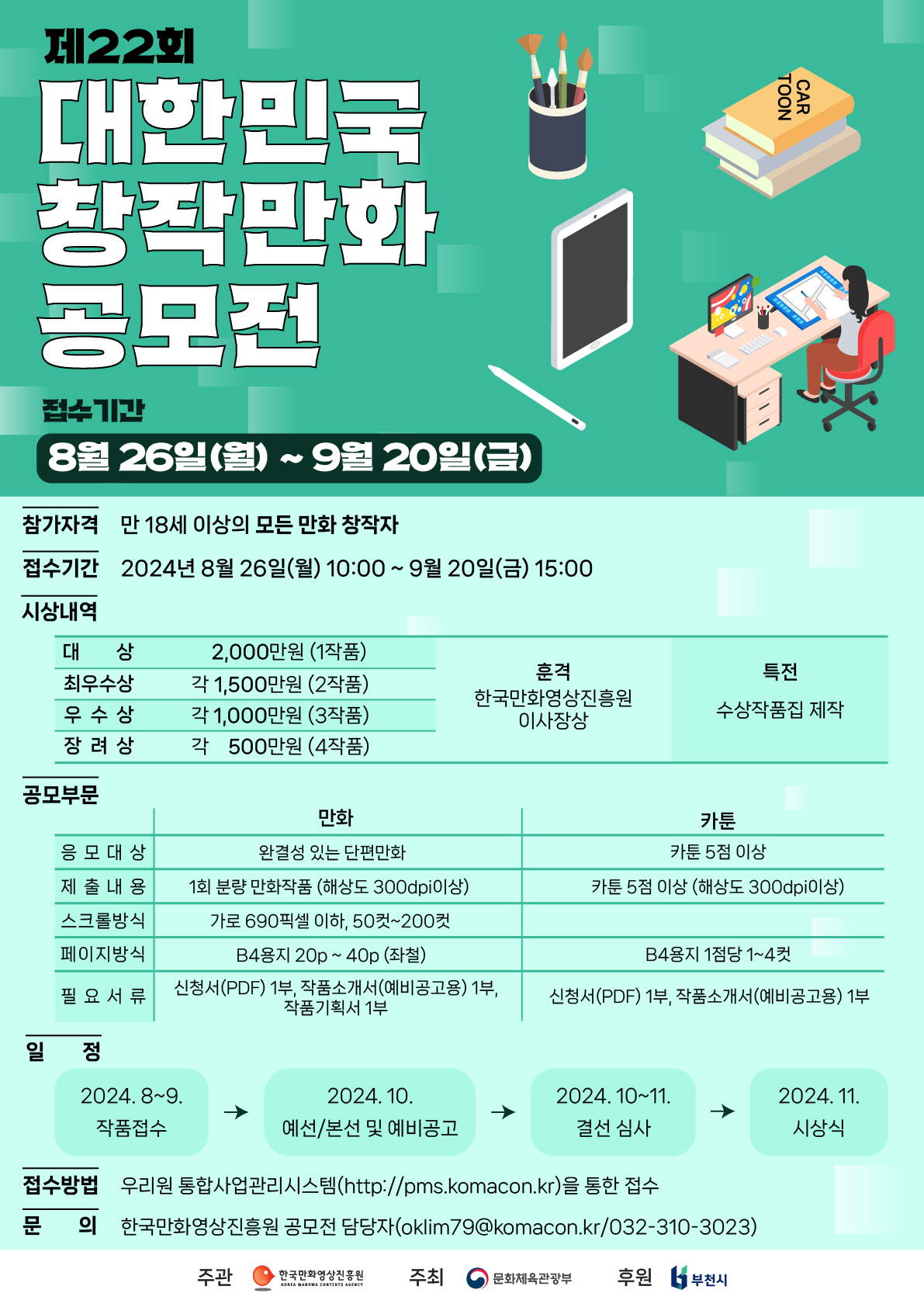 - 파일명(ZIP): 제22회 대한민국창작만화공모전_만화 or 카툰_작품명