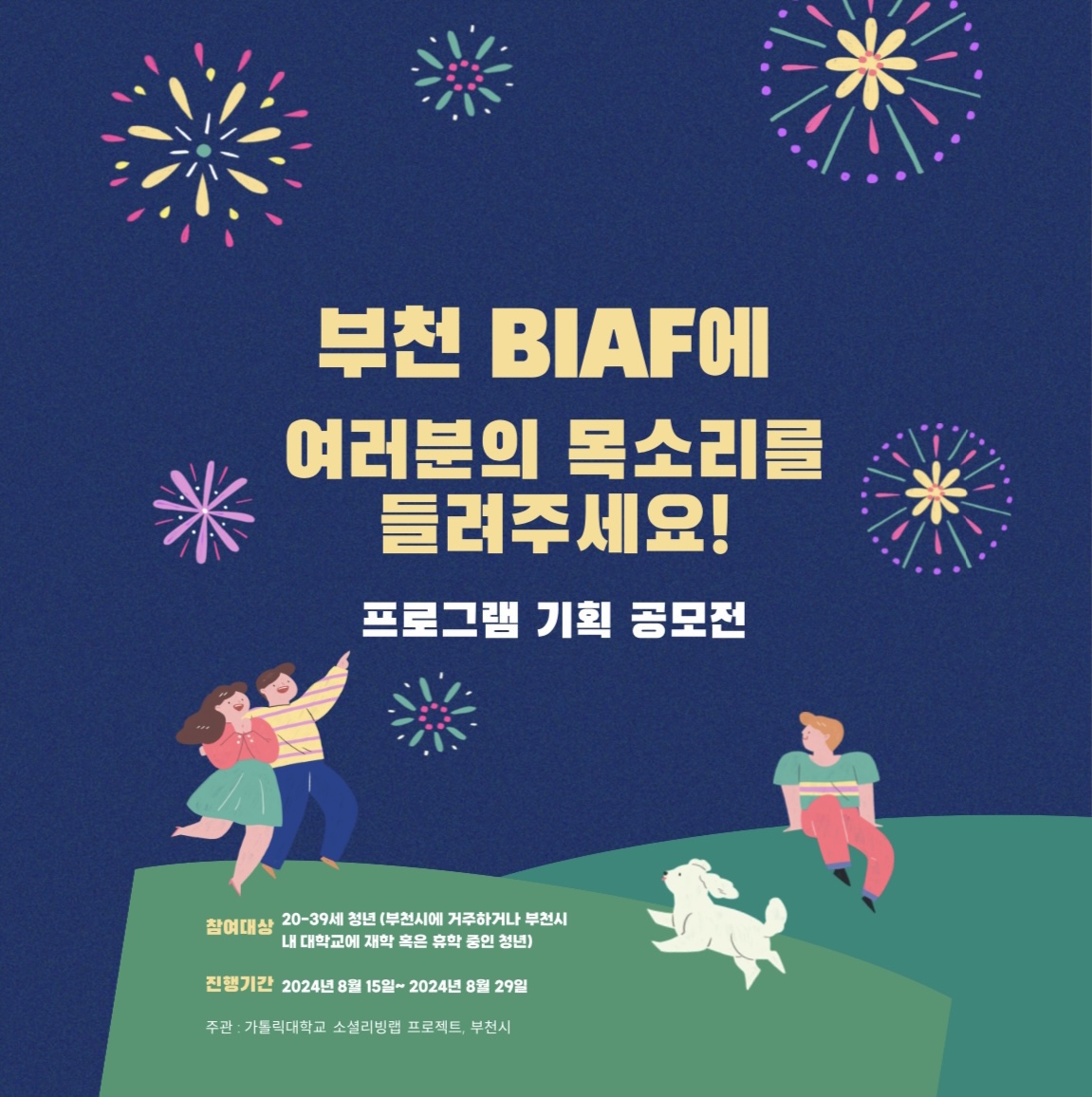 ➡️청년들이 직접 부천시 축제의 프로그램을 기획하고 운영할 수 있는 기회를 제공하여 청년 주도의축제 문화를 조성하는 것이 목적입니다.