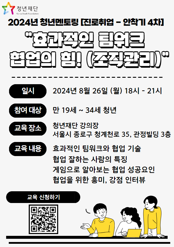 * 장소 : 청년재단 강의실 (서울특별시 종로구 청계천로 35, 관정빌딩 3층)