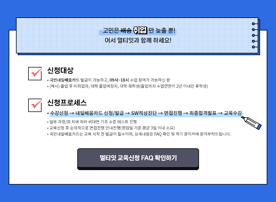 ✓ 국민내일배움카드 발급이 가능하고, 09시~18시 수업 참여가 가능하신 분