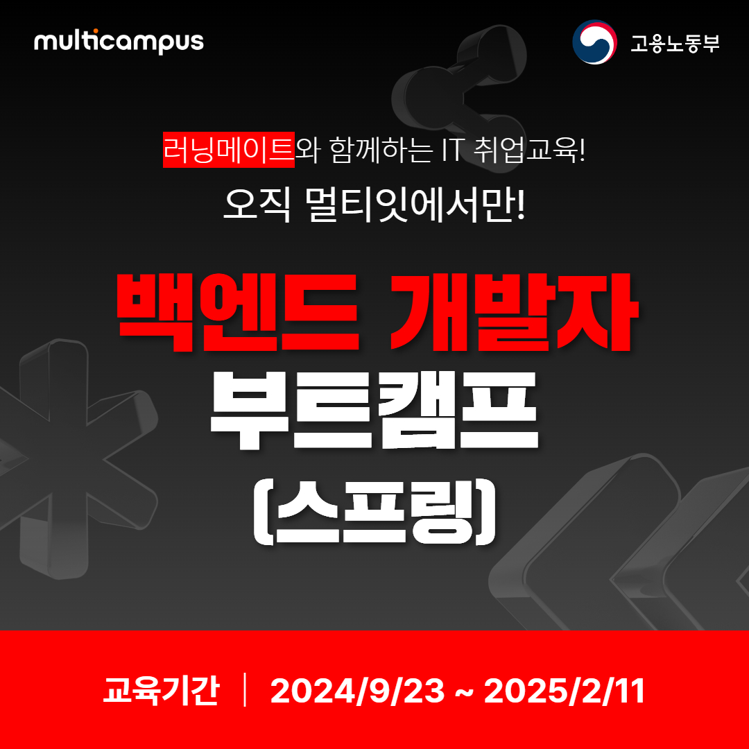 🌟 [멀티캠퍼스] 백엔드 개발자 부트캠프 (스프링) 과정 수강생 모집🌟