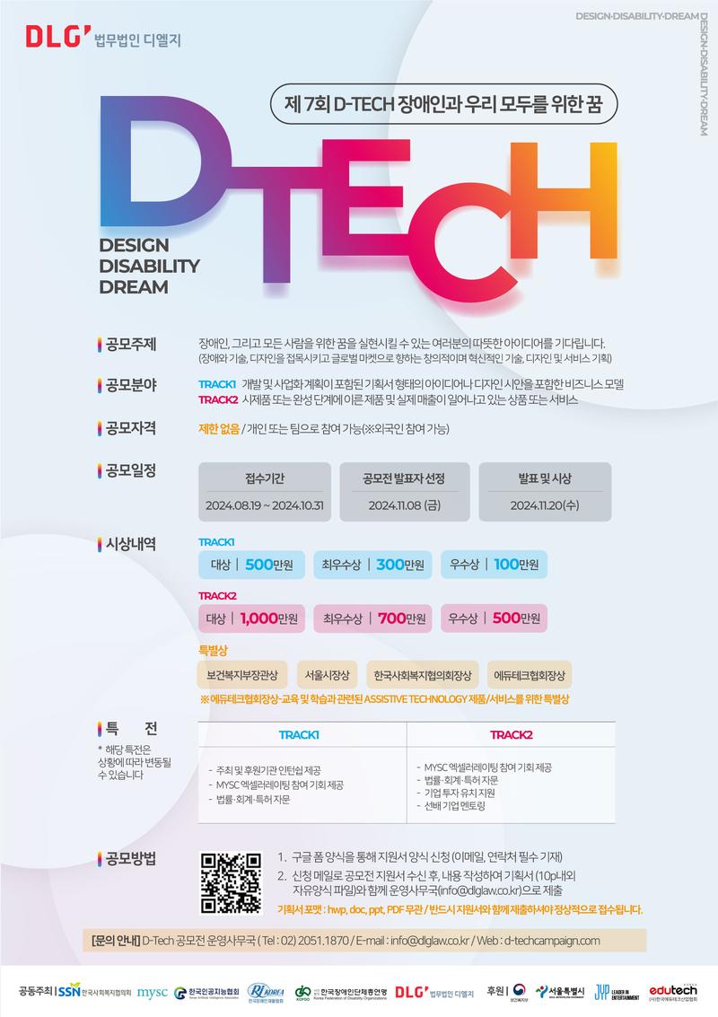 제7회 디테크(D-TECH) 공모전, 장애의 벽 허무는 혁신 아이디어를 찾습니다!