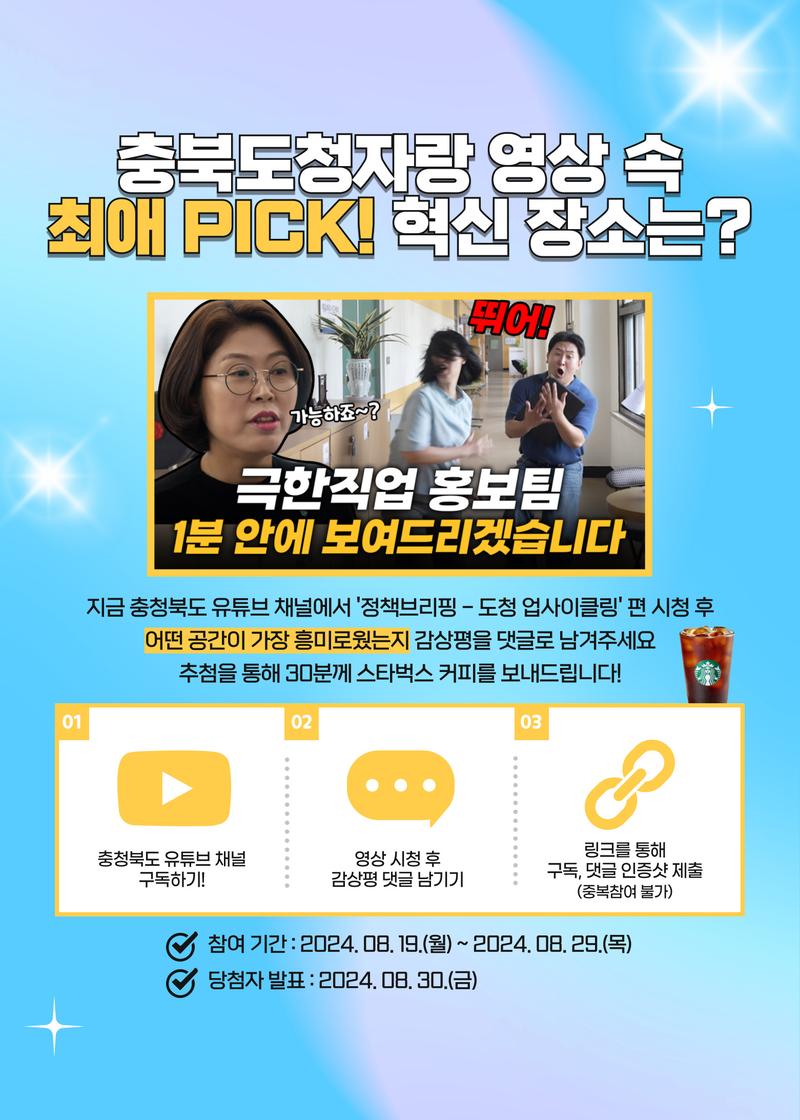 🎉 충북도청자랑 영상 속 최애 PICK! 혁신 장소는? 🎉