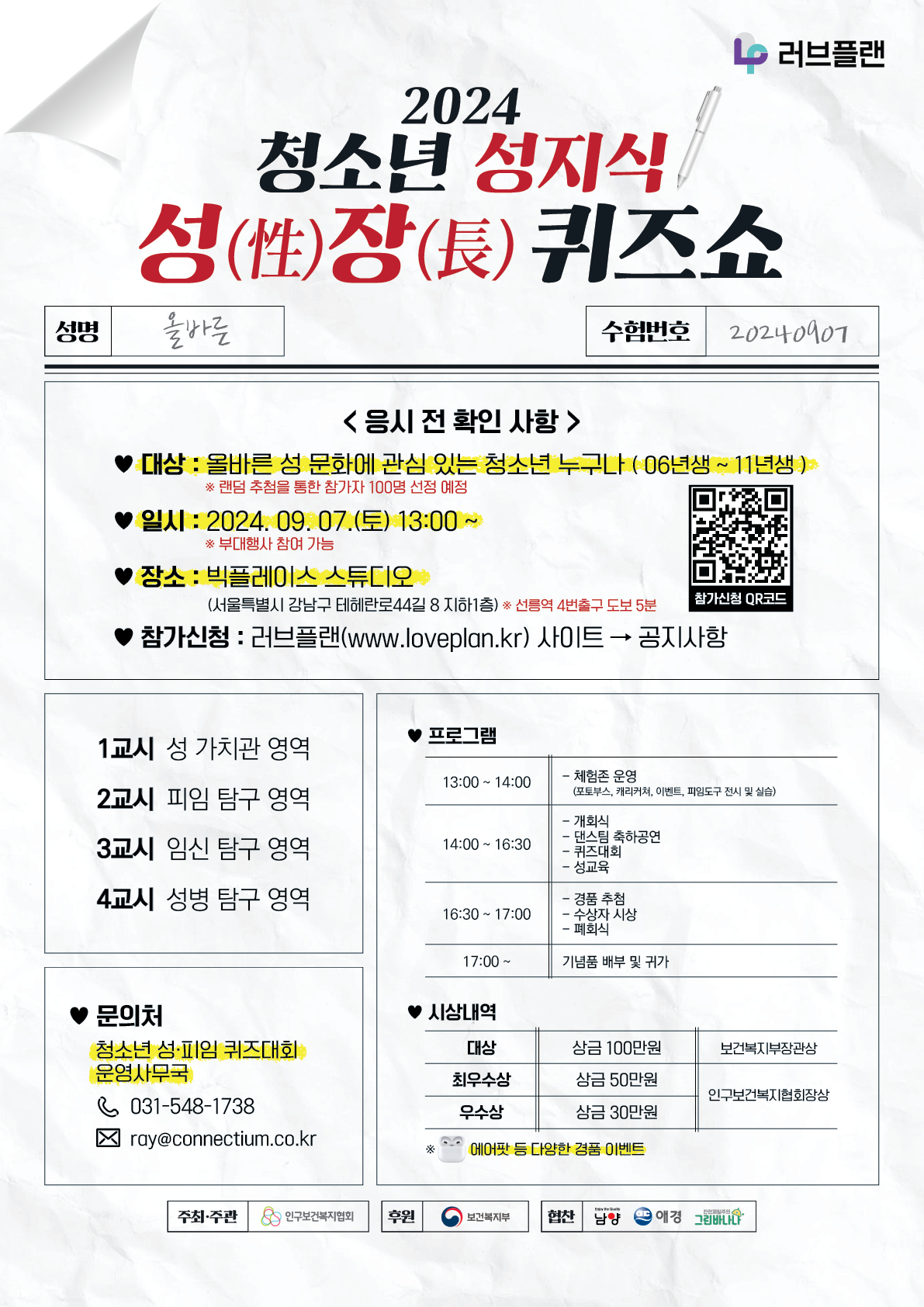 2024 청소년 성지식 성(性)장(長) 퀴즈쇼