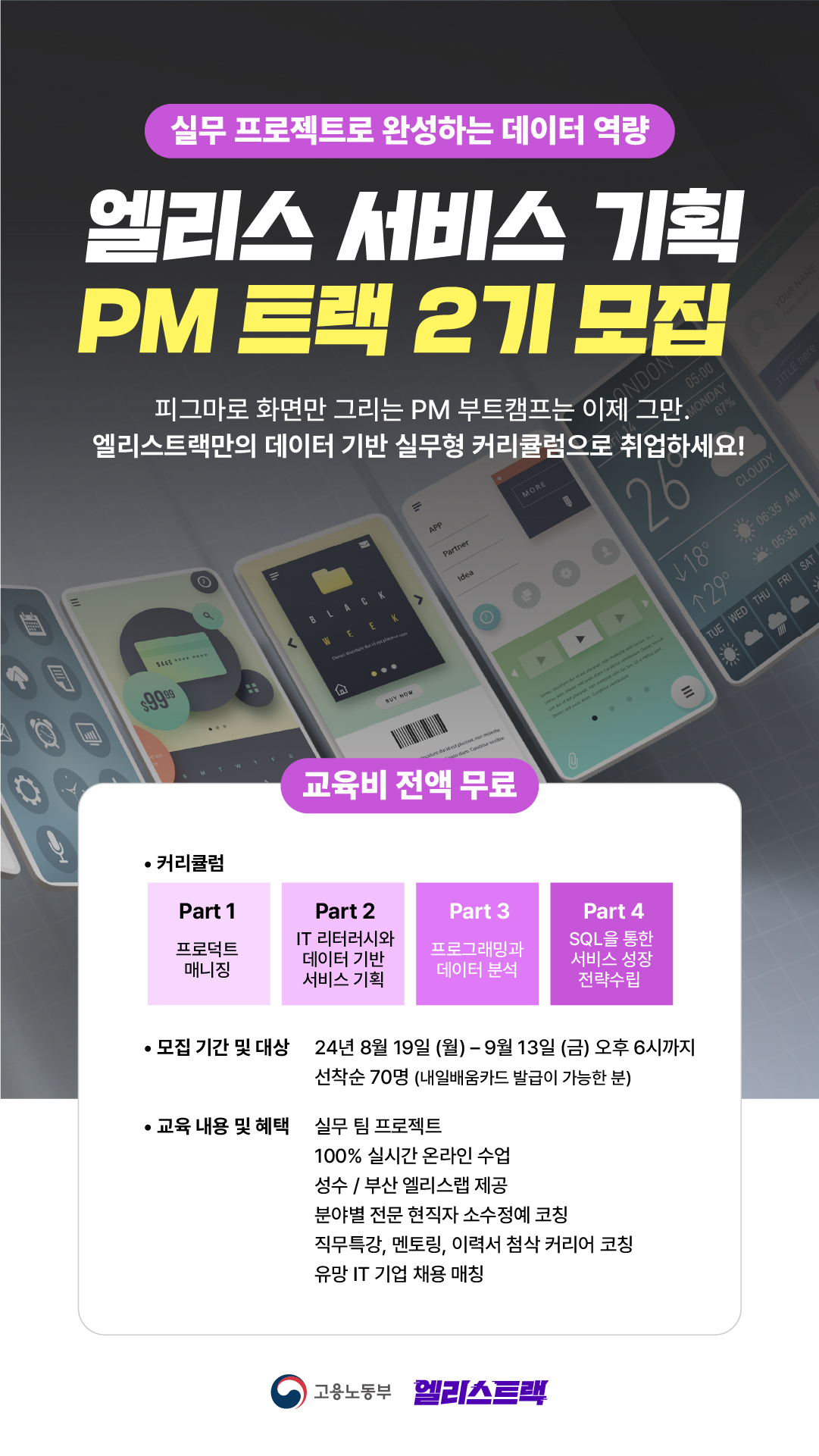 [실무 프로젝트로 완성하는 데이터 역량] 엘리스 서비스 기획 PM 트랙 2기 모집 |