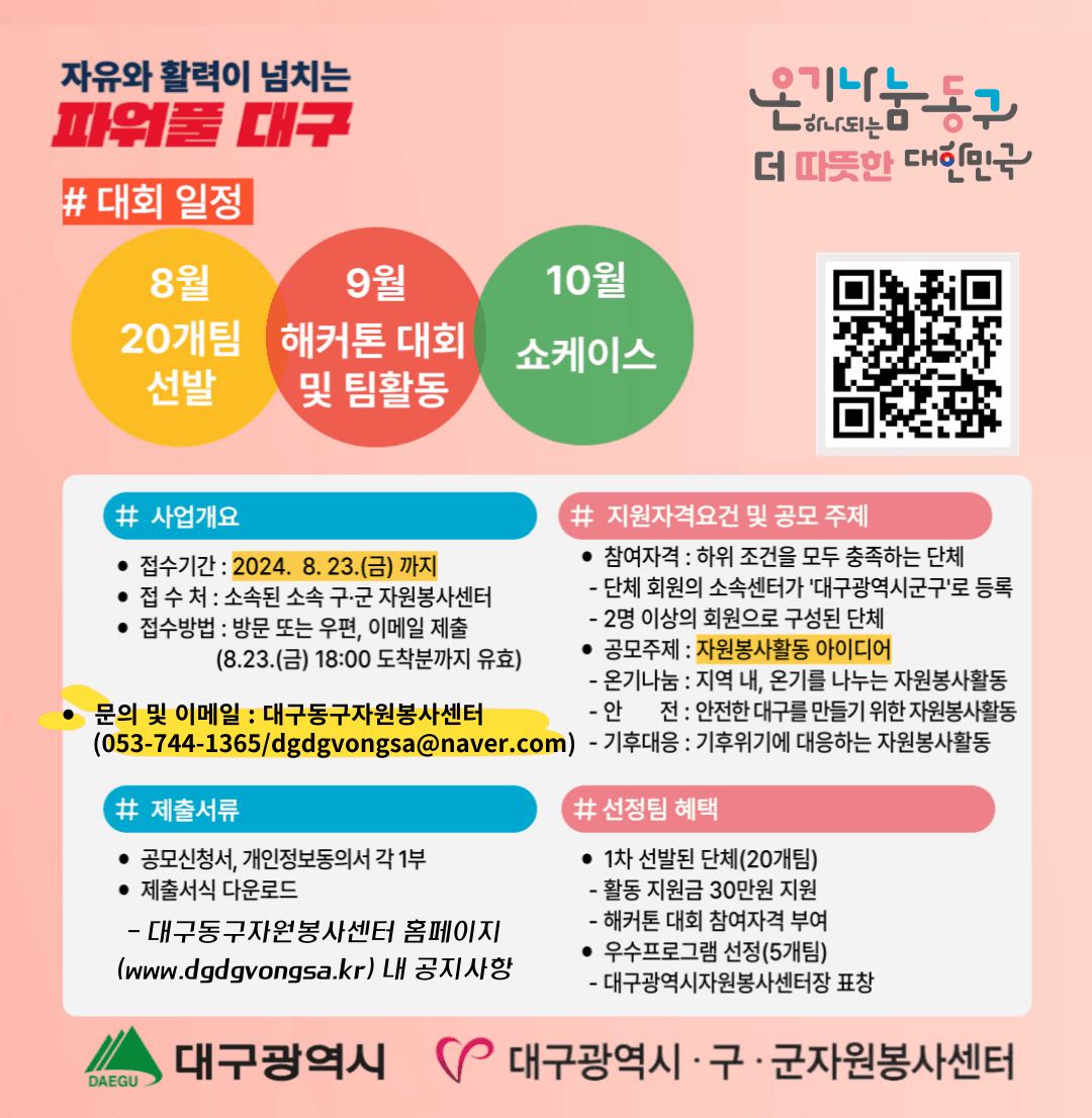 「2024대구온기나눔아이디어공모 자원봉사 해커톤 대회」 시행을 다음과 같이 공고합니다.