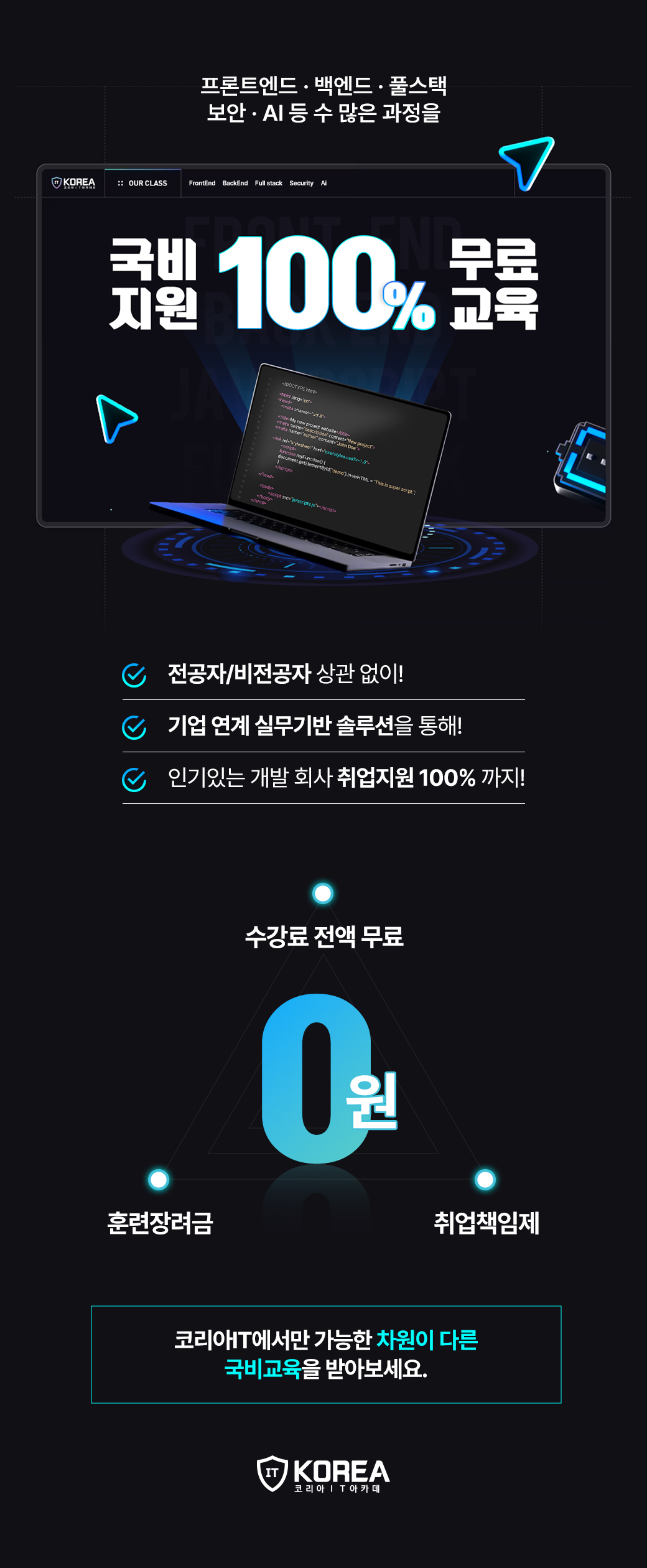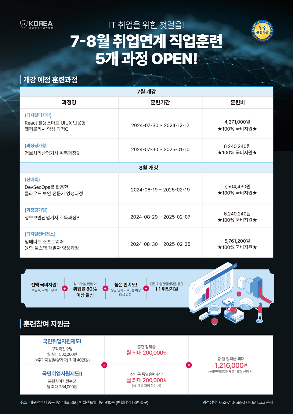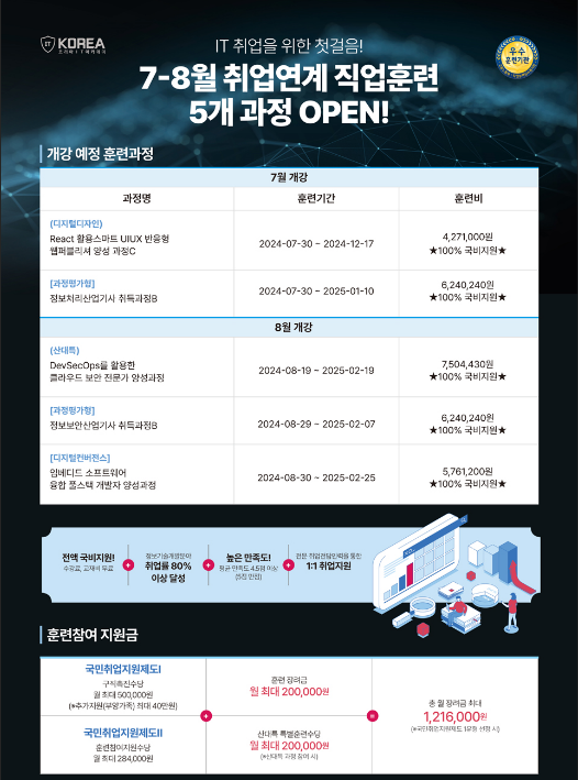 훈련수당 받고, 무료로 수강하고, 취업지원까지 지원해드리니 많은 신청 부탁드립니다.