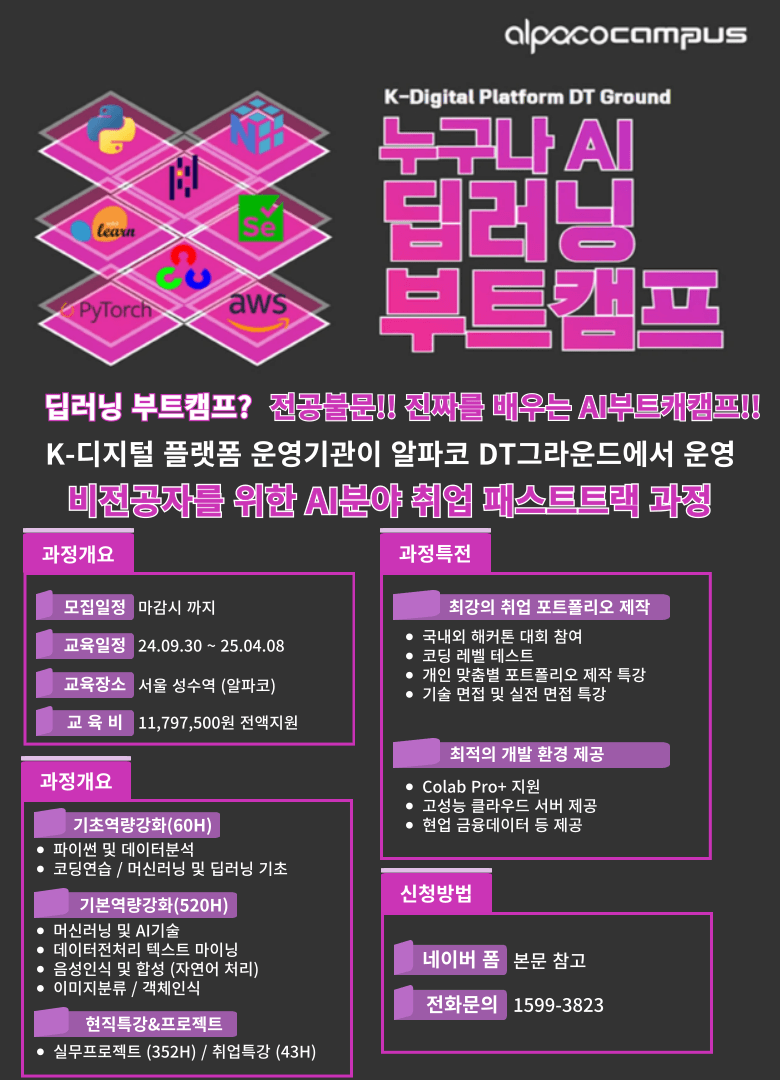 서울 성수동 AI(인공지능) 빅데이터 전문가 부트캠프 취업연계 교육 [무료과정]