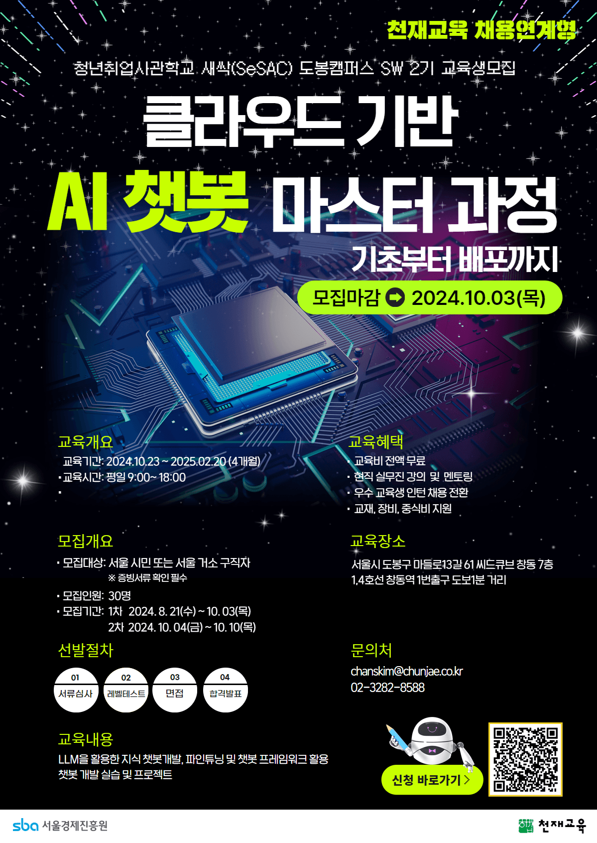[서울시 청년취업사관학교 새싹(SeSAC) 도봉캠퍼스 SW2기 교육생 모집] - 교육비 전액 무료! 천재교육 채용연계과정!