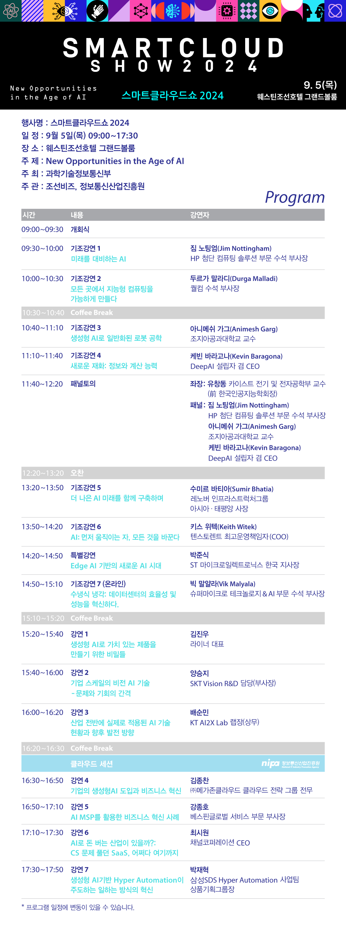 두 연사 외에도 스마트클라우드쇼2024의 화려한 연사진과 프로그램은 바로 하단에서 확인해주세요:)