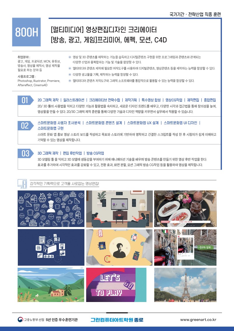 다양한 광고물 스토링텔링, 편집실무, 프로그램 구성과 기획에 대한 이해, 시각연출을 위한 기획훈련 진행