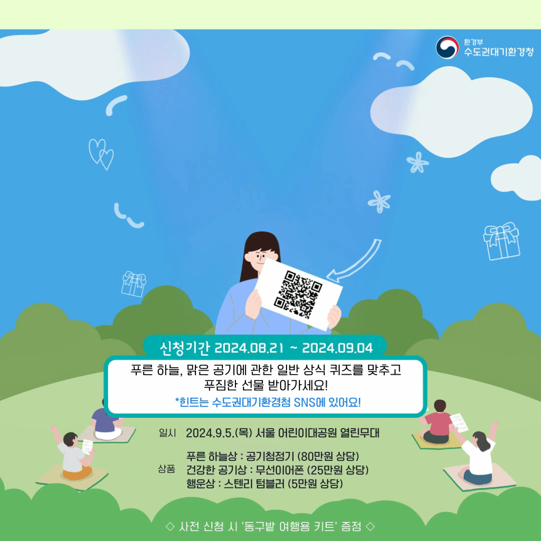 대기환경, 맑은 공기 관련 간단한 퀴즈를 푸는 대회로 모든 문제는 수도권대기환경청 SNS에서 출제됩니다.