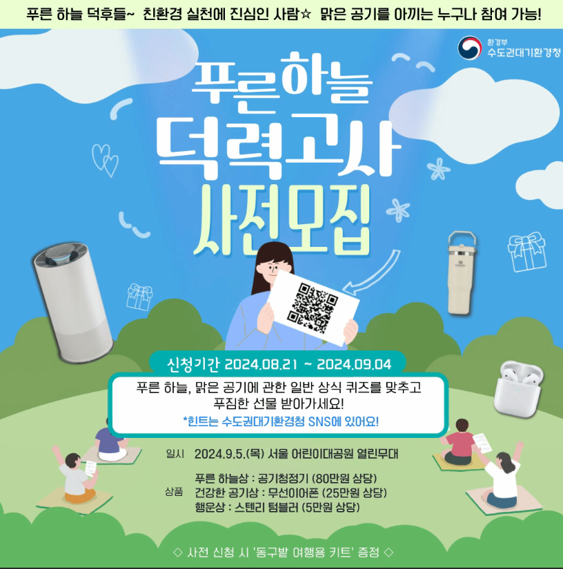 푸른 하늘 관련 퀴즈 풀고 공기청정기, 에어팟 받아가세요~