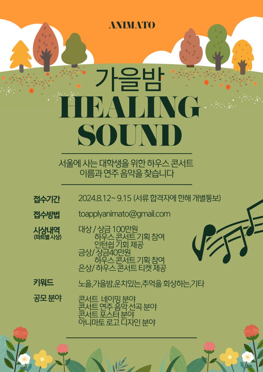 아니마토에서 콘서트 이름/포스터/연주 음악과 아니마토 로고디자인 공모전을 개최합니다.