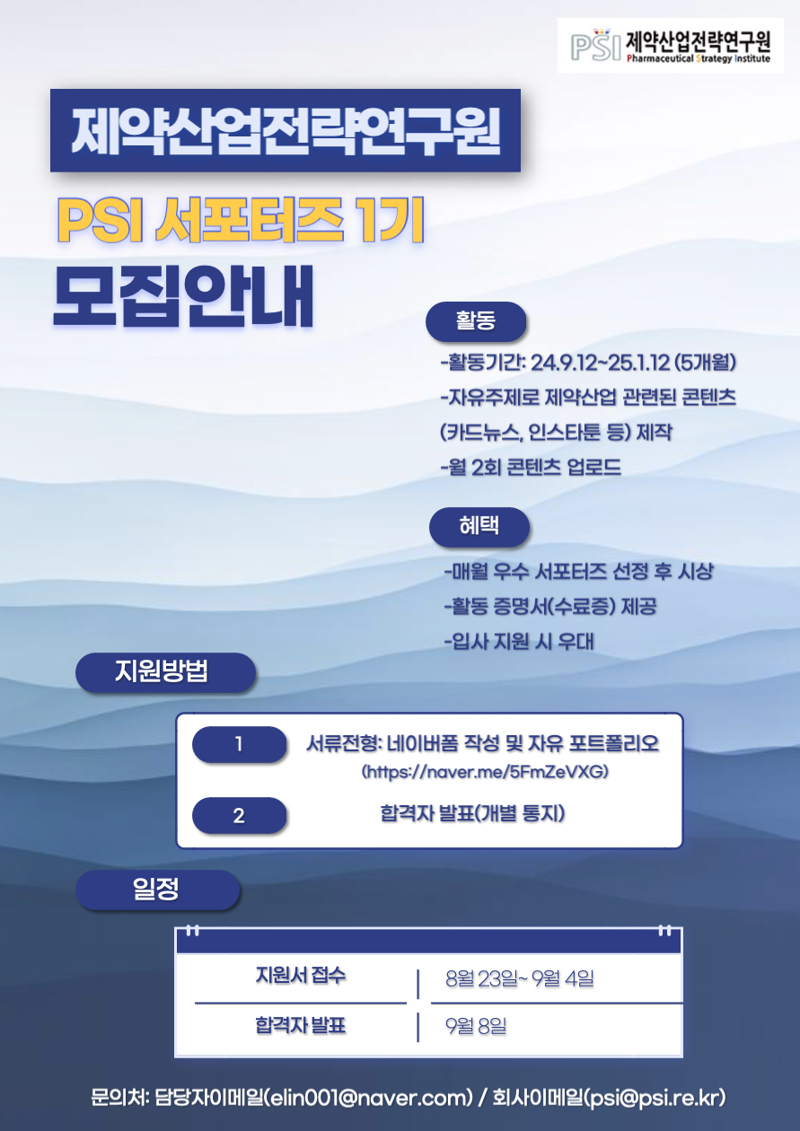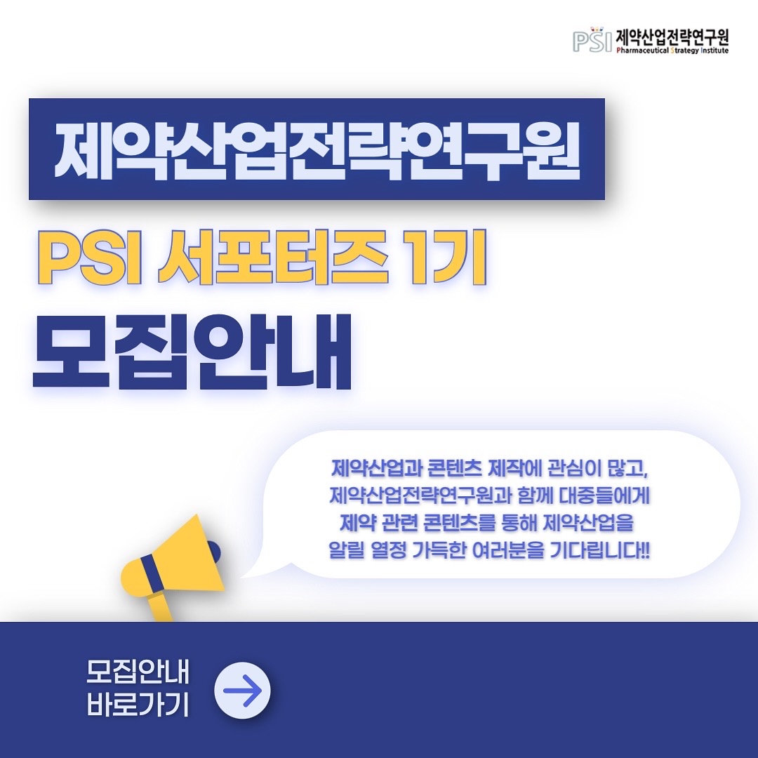 제약산업전략연구원에서 ‘PSI 서포터즈’를 모집합니다! ✨