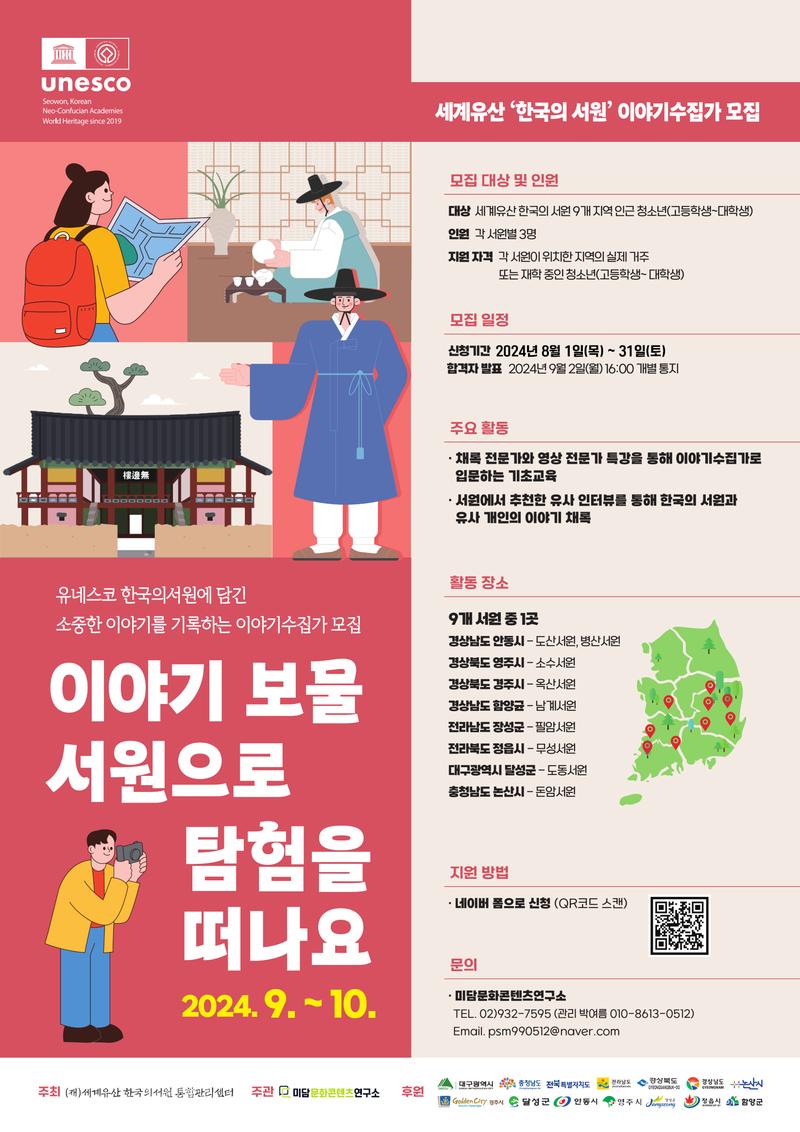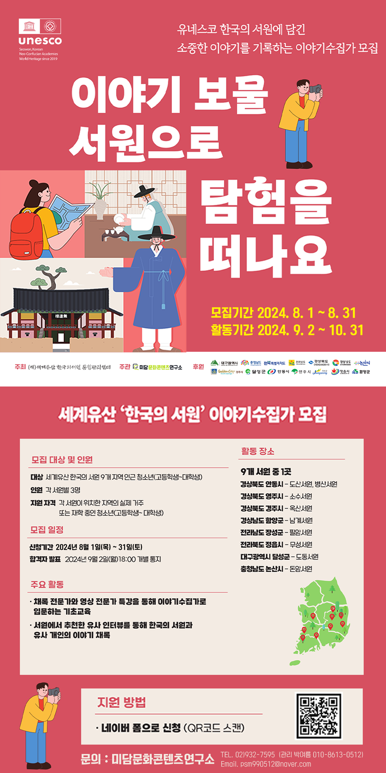 유네스코 세계유산 '한국의 서원'에 관심있는 고등학생, 대학생 주목!