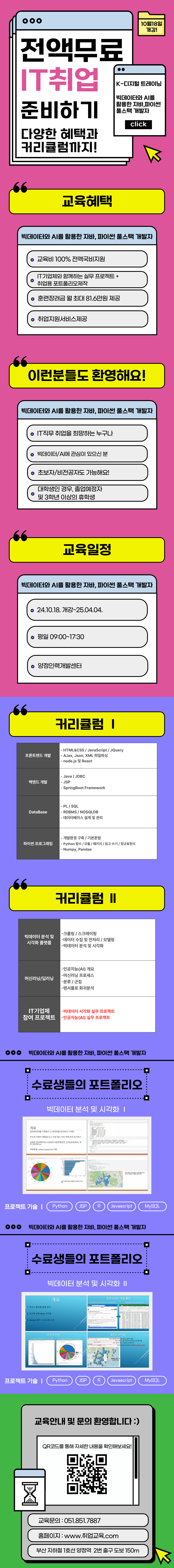 💛IT취업 인기과정!💛 빅데이터와 AI를 활용한 자바, 파이썬 풀스택 개발자 ◀자세히보기 CLICK♪(^∇^*)