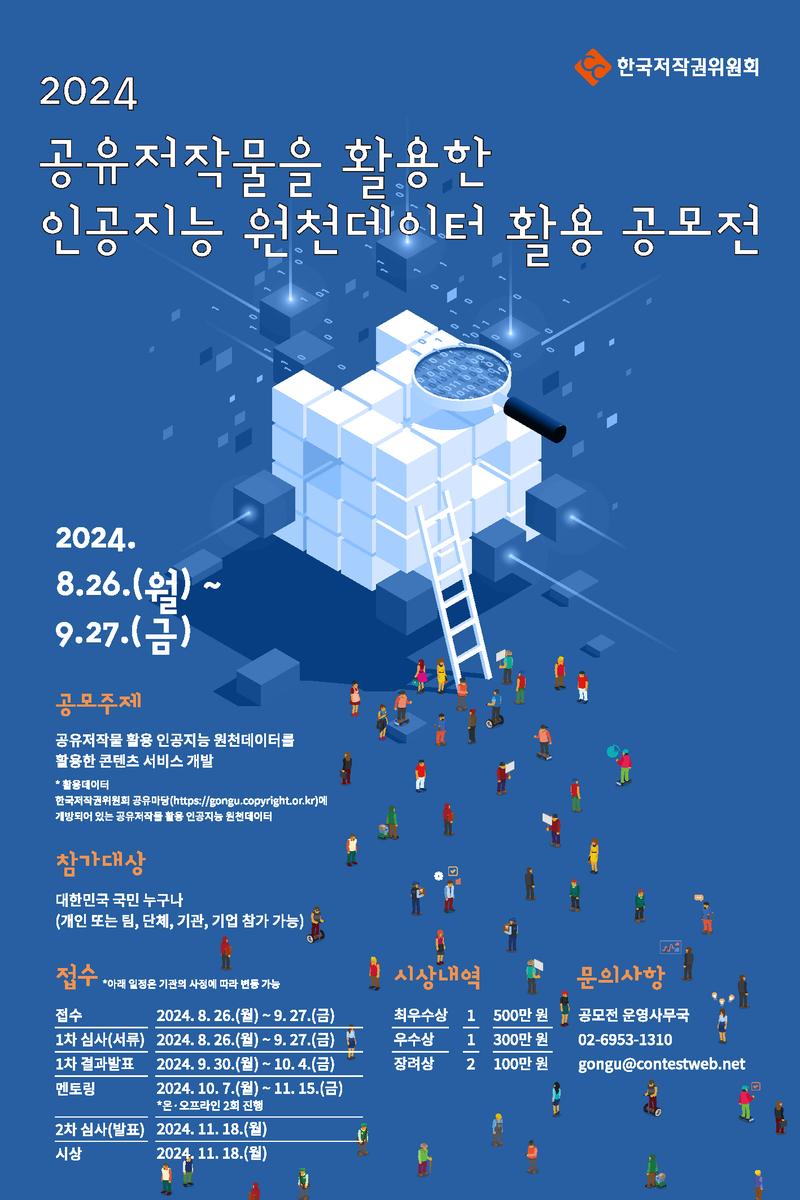 - 공유마당에서 제공하는 공유저작물을 활용한 인공지능 원천데이터 외를 활용하여 제작한 공모작은 저작권을 침해하지 않아야 하며, 공모작에 대한 저작권 등 관련 법적 분쟁 및 배상은 참가자가 전적으로 책임·부담함