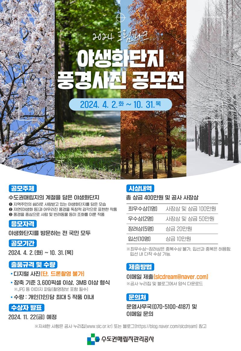 수도권매립지관리공사는 지역주민의 쉼터로 사랑받고 있는 드림파크 야생화단지의 아름다움을 널리 알리기 위해 '드림파크 야생화단지 풍경사진 공모전'을 개최합니다!