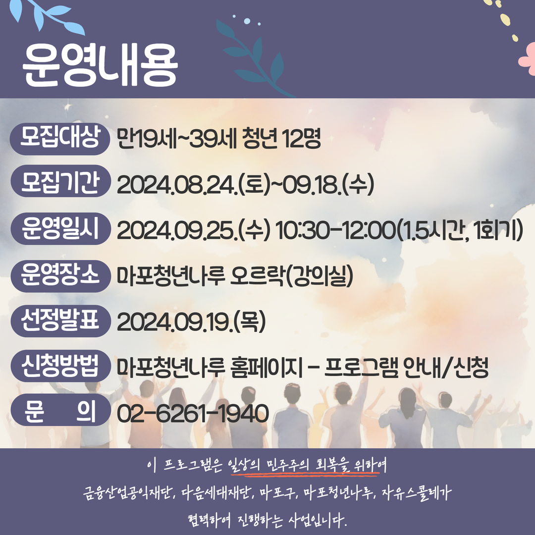◎ 운영장소: 마포청년나루 오르락(강의실)