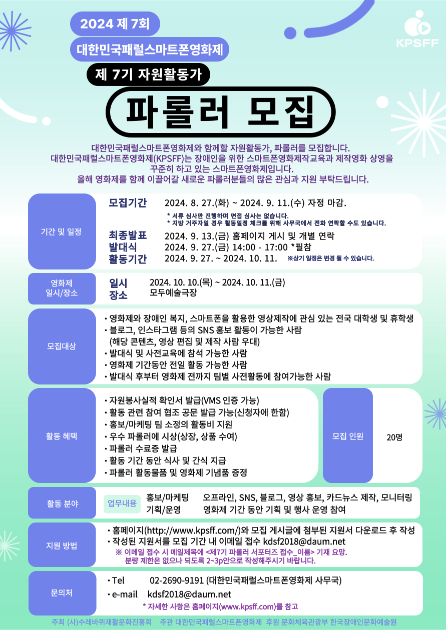 2024 제7회 대한민국패럴스마트폰영화제 자원활동가
