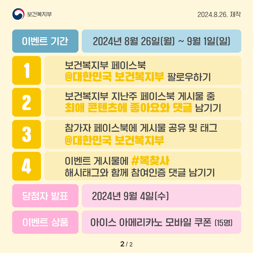 #보건복지부 #복찾사 #보건복지를찾는사람들 #이벤트 #댓글이벤트 #최애콘텐츠