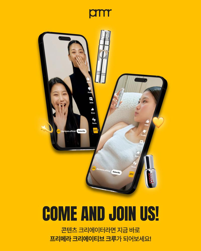 아모레퍼시픽 프리메라의 다양한 제품을 경험하고, 숏폼 콘텐츠를 기획 및 제작하여 프리메라 브랜드 마케팅 활동을 함께 할 새로운 서포터즈 '크리에이티브 크루 1기'를 모집합니다. 💛
