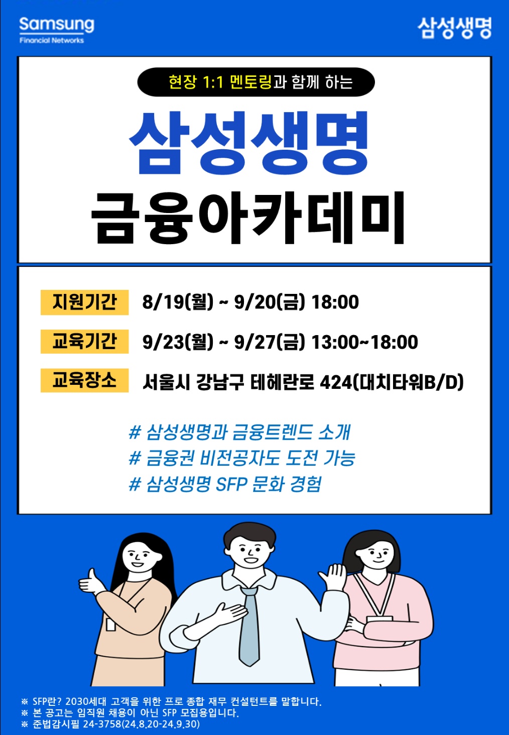교육이 탄탄한 삼성생명에서 약 5일간 진행되는 금융아카데미를 진행합니다.