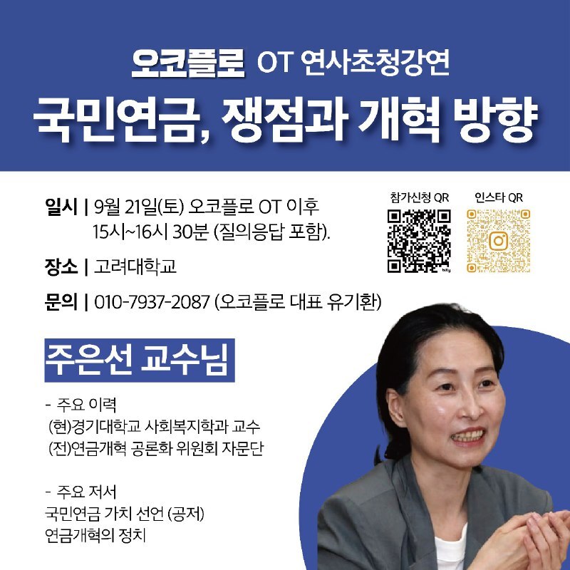 ✒️OT 연사초청강연 [국민연금, 쟁점과 개혁 방향]