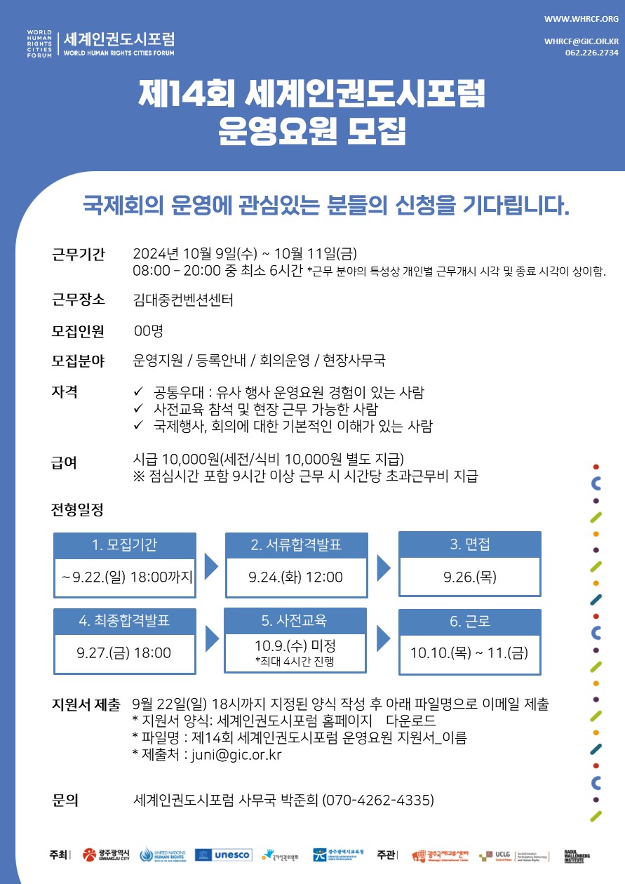 문의 : 세계인권도시포럼 사무국 박준희 (070-4262-4335)