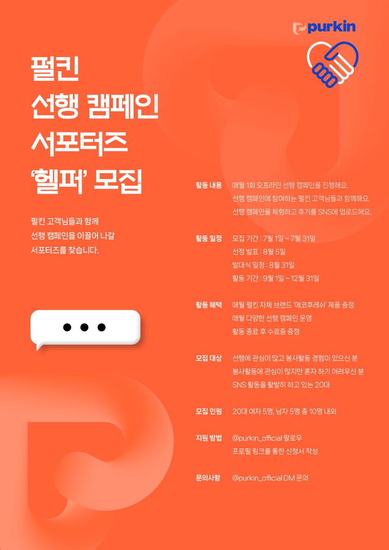 🧡 2024 펄킨 선행 캠페인 서포터즈 '헬퍼 1기'를 모집합니다 🖐🖐