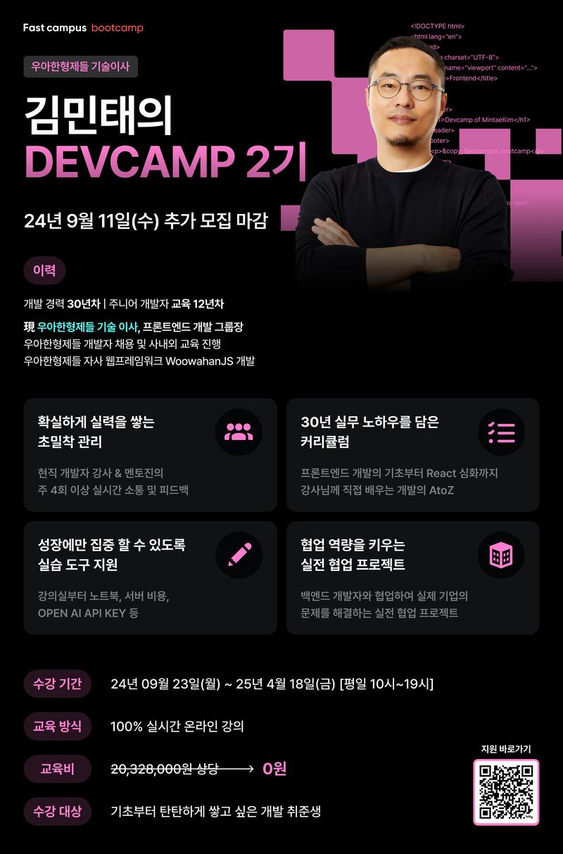 프론트엔드 개발 부트캠프 <김민태의 데브캠프> 2기 오픈❗
