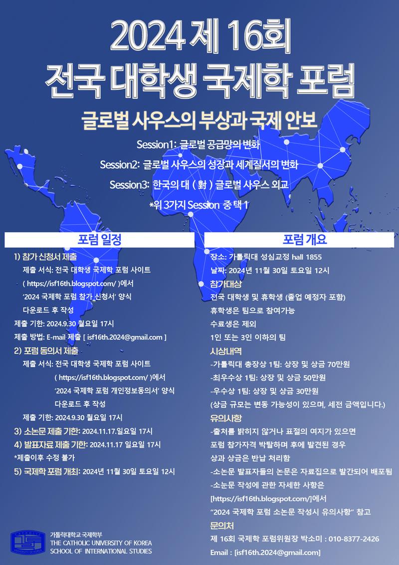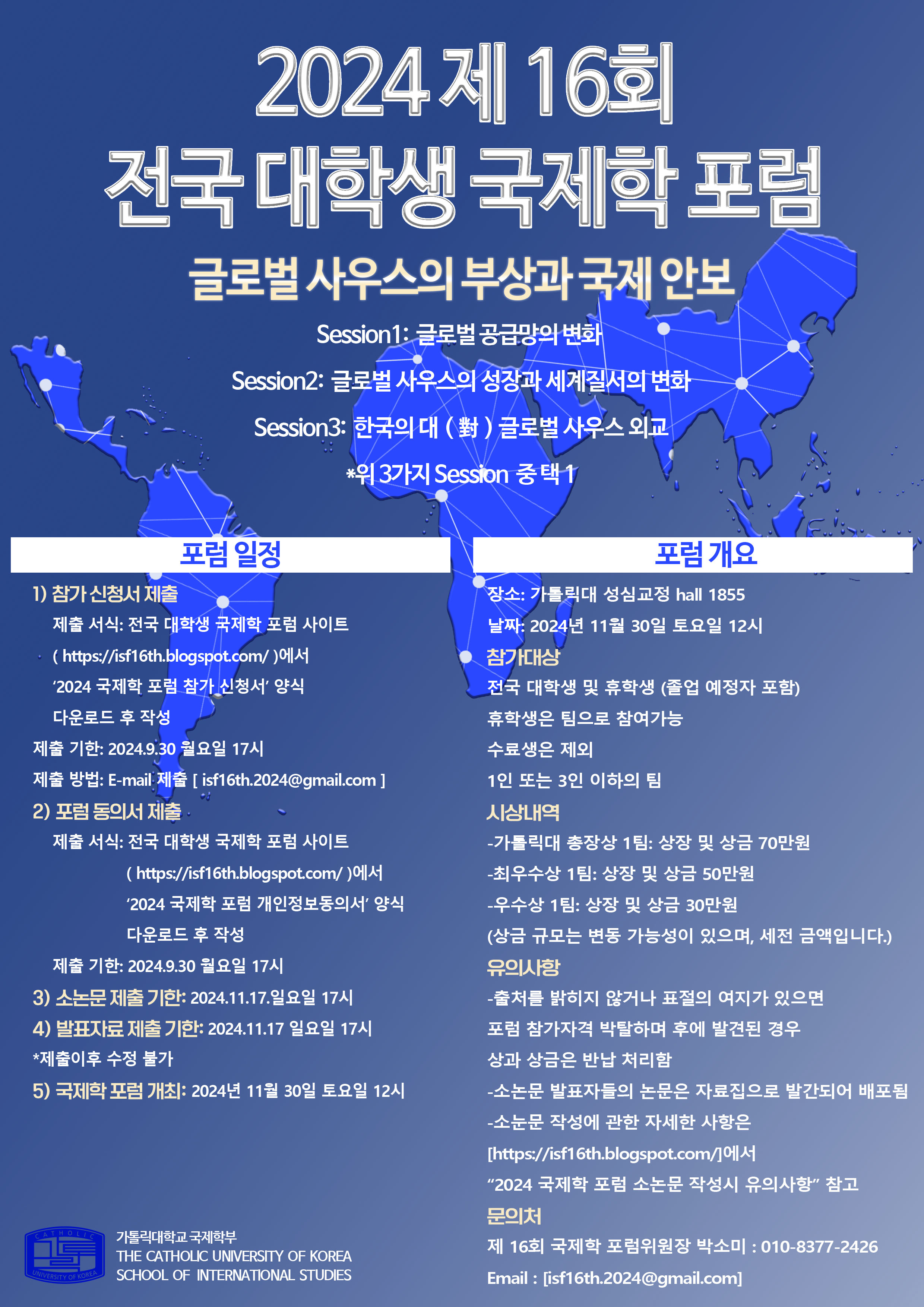 (https://isf16th.blogspot.com/)에서 '2024 국제학 포럼 참가 신청서' 양식 다운로드 후 작성