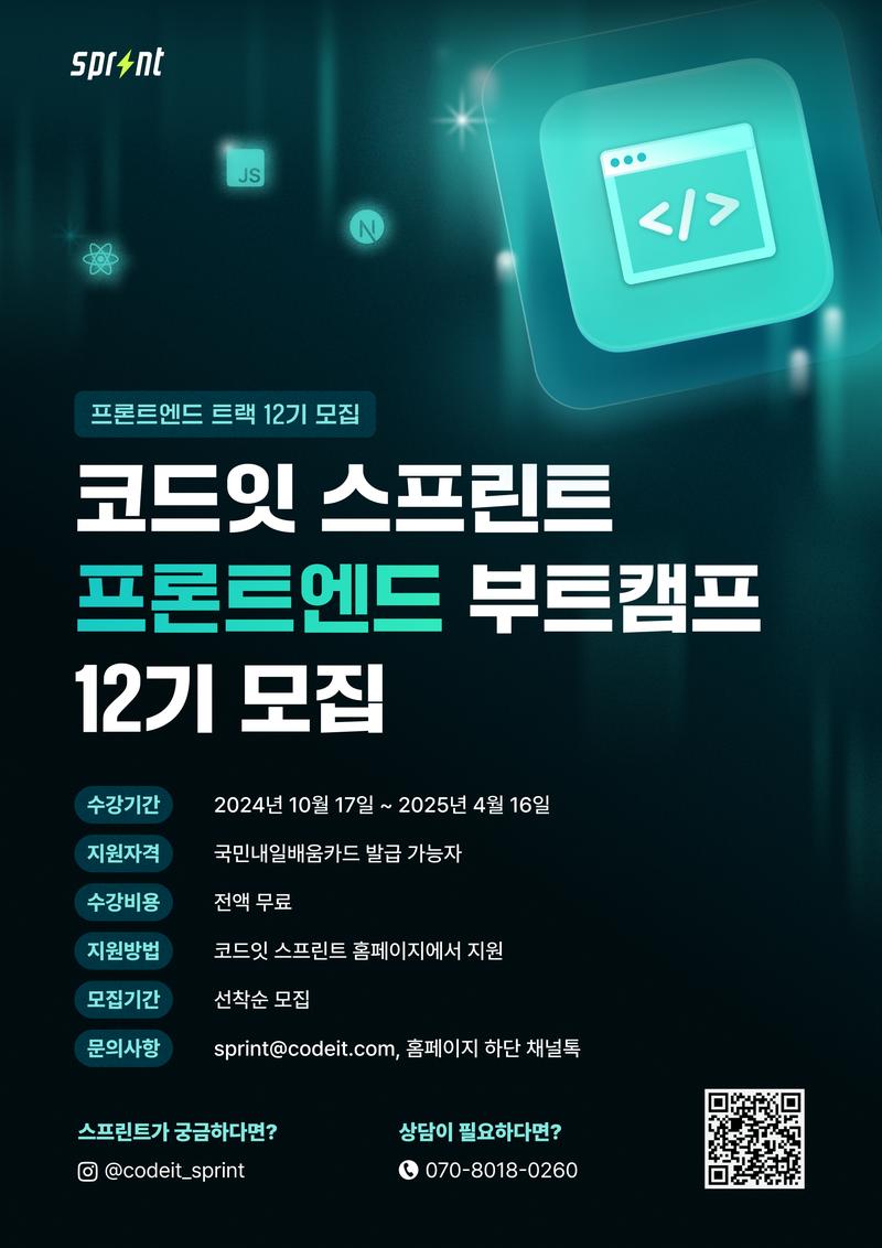 9월 25일, 코드잇 스프린트 프론트엔드 엔지니어 트랙 12기 사전설명회를 진행합니다