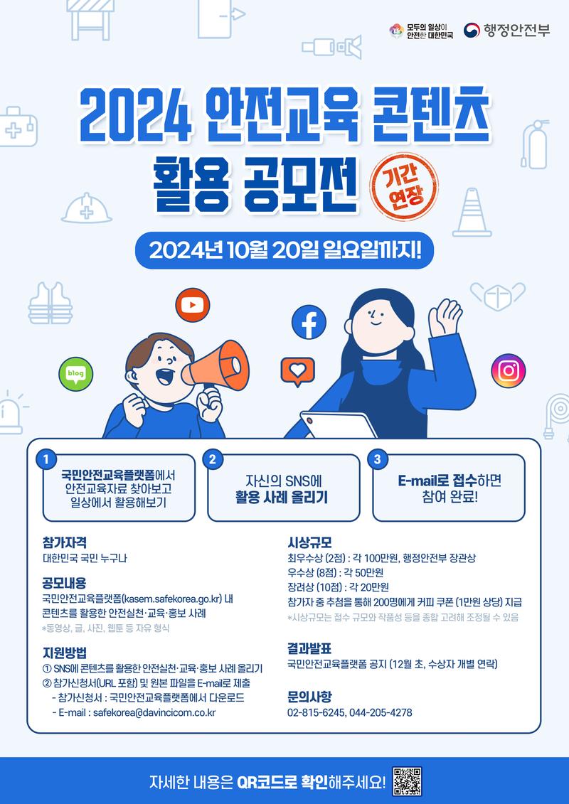 [행정안전부] 2024년 안전교육 콘텐츠 활용 공모전 (~10/20)