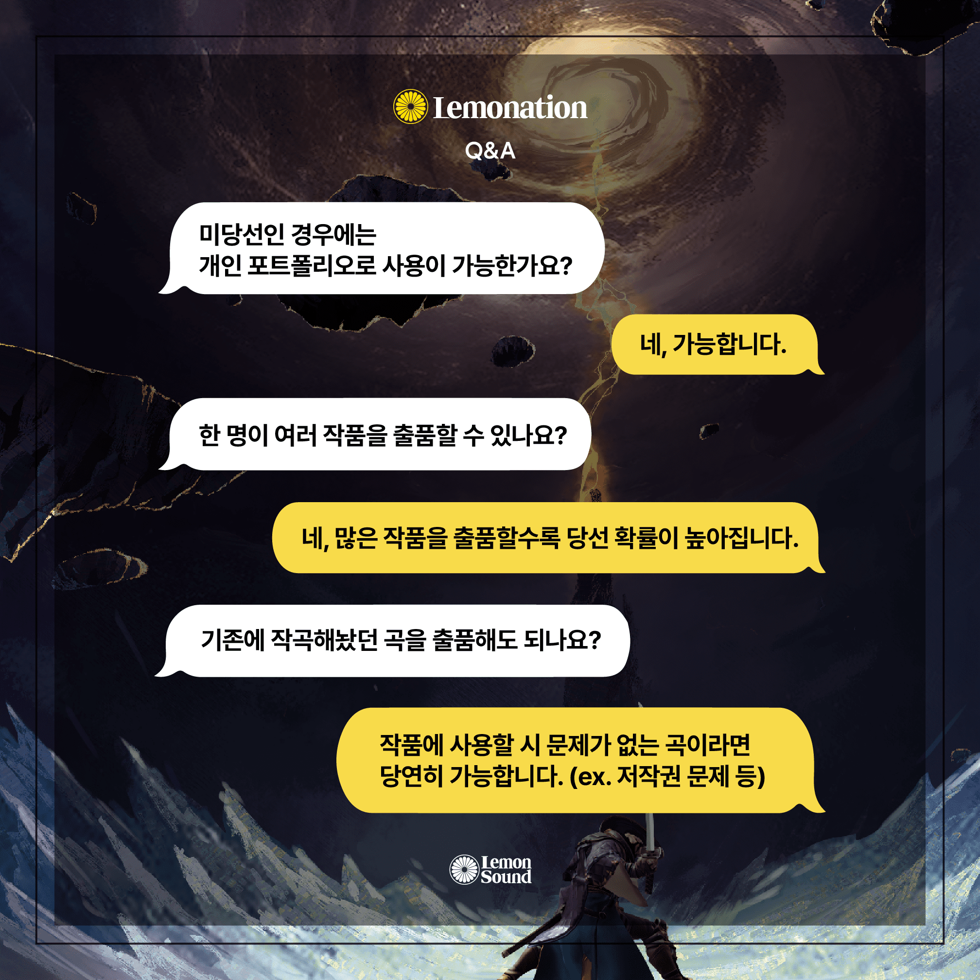 지원 자격: 무관 (개인 및 팀으로 참여 가능, 레몬사운드 홈페이지 가입 후 접수)