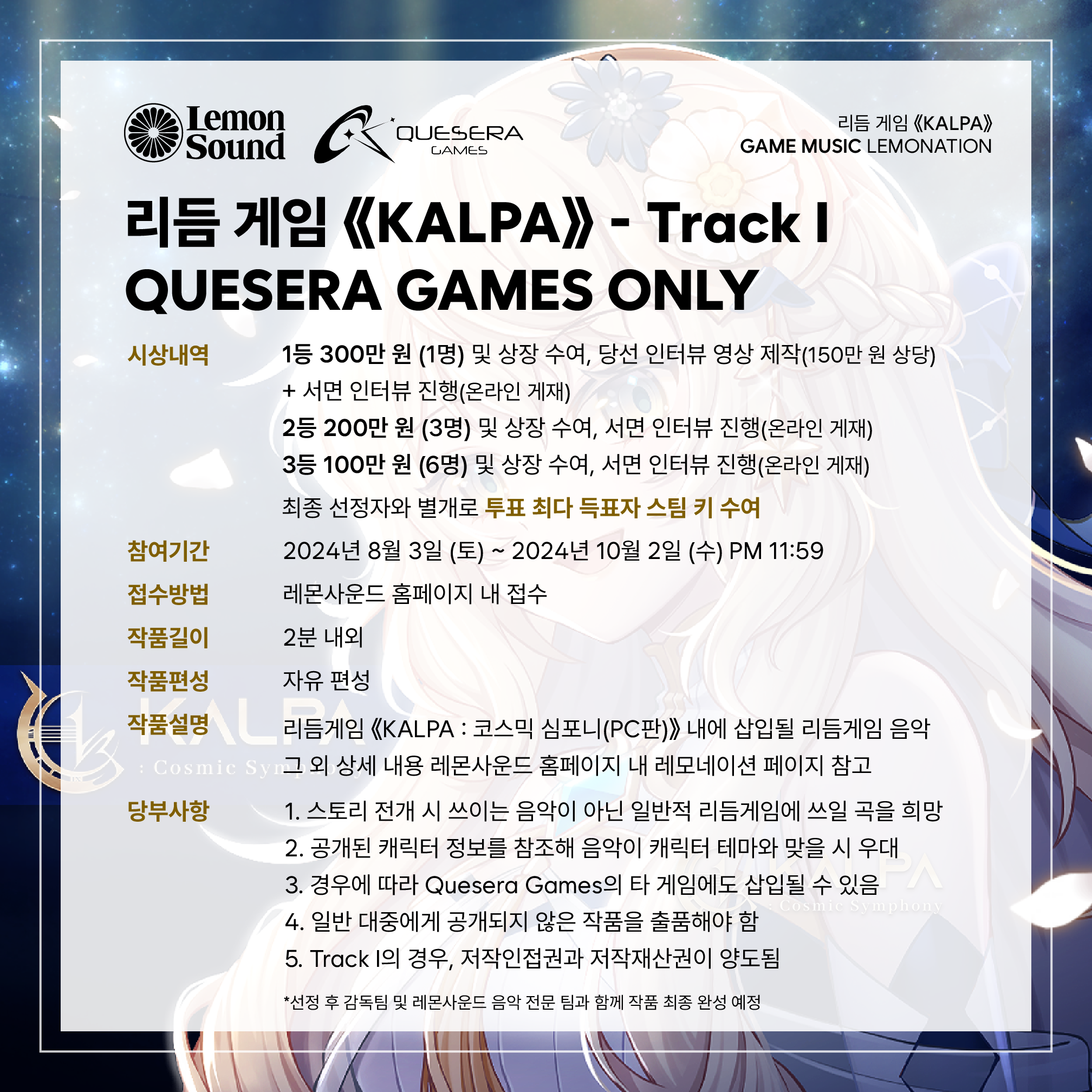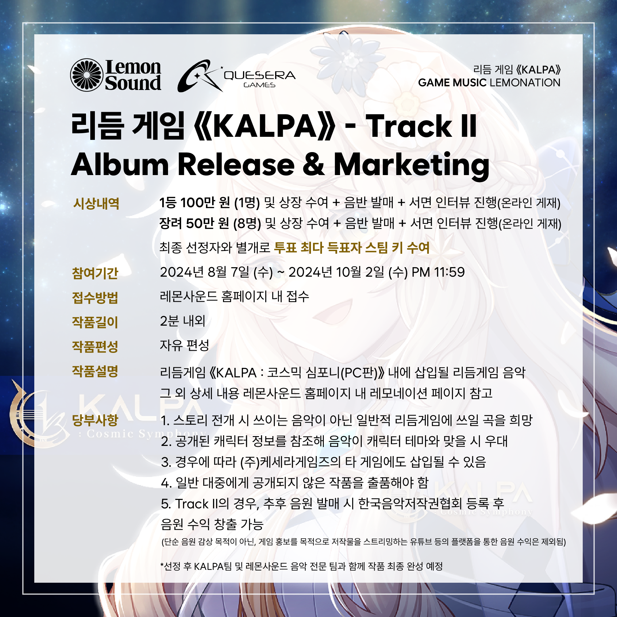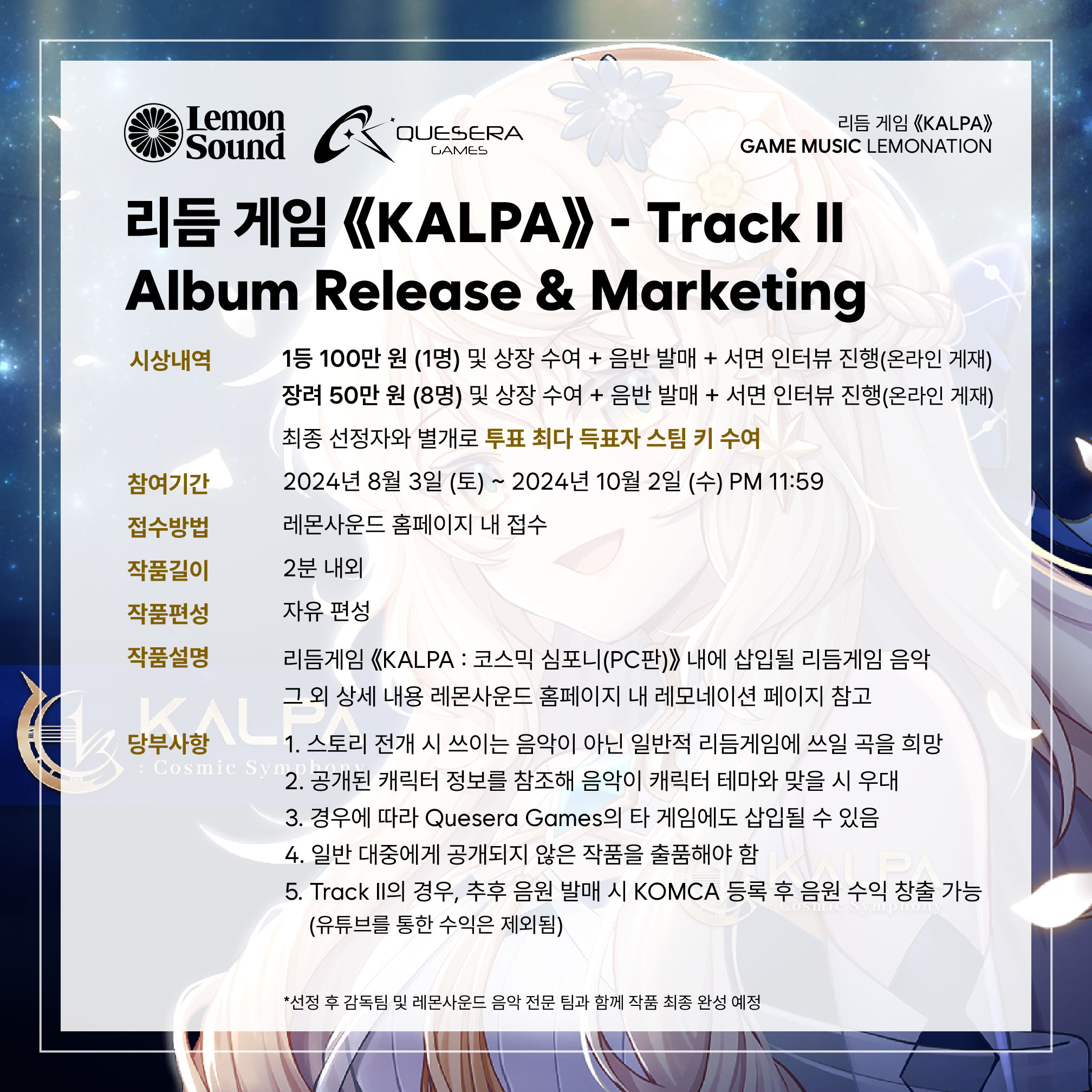 3. 추후 작품 공개 이후 Track II 당선작 음원 발매 예정 (한국음악저작권협회 등록 가능)