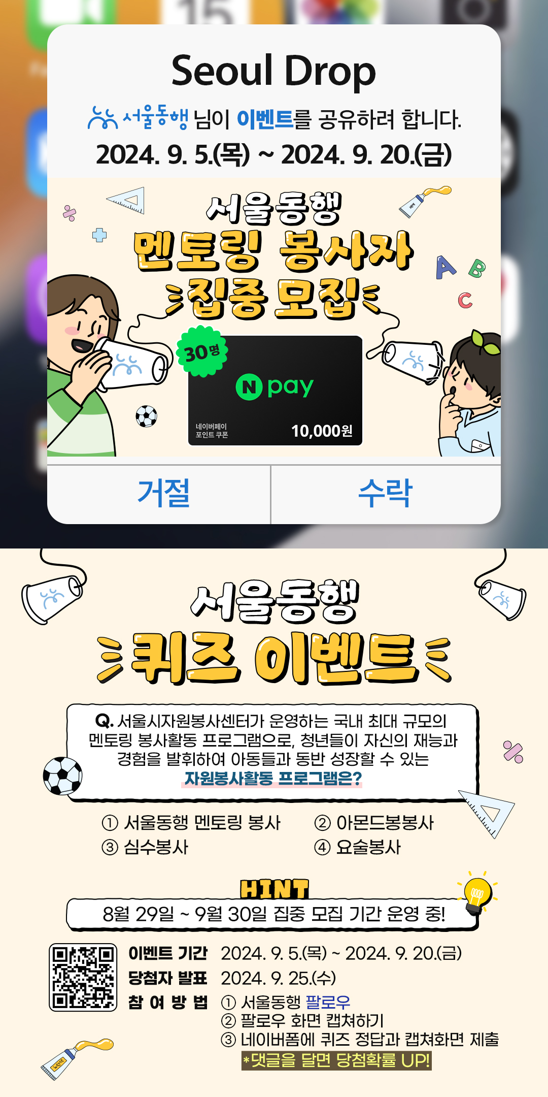 서울동행 멘토링 봉사 집중모집 기간이 다가왔따!