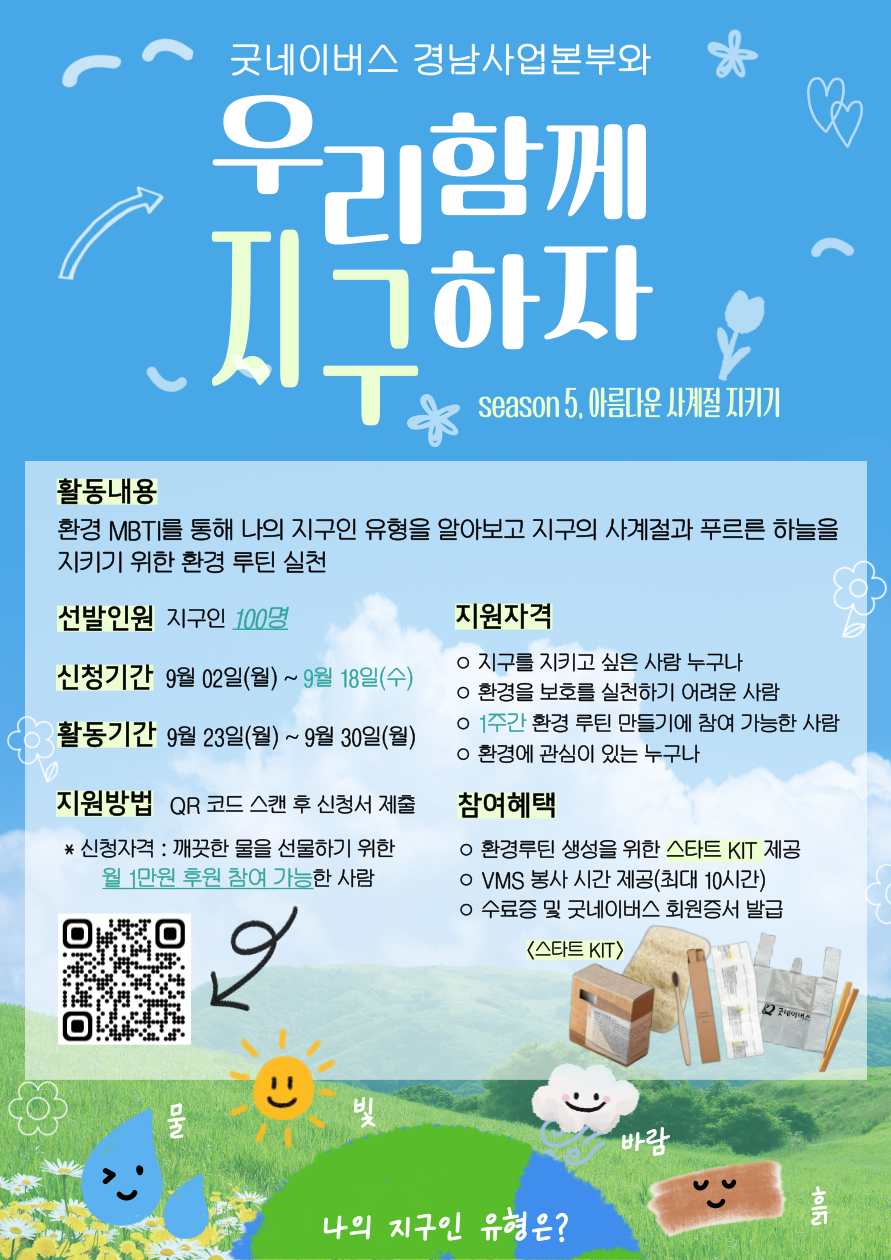 글로벌 NGO 굿네이버스와 함께 우리의 지구, 아름다운 사계절을 지키기 위한 ‘100인의 지구인’을 구합니다.