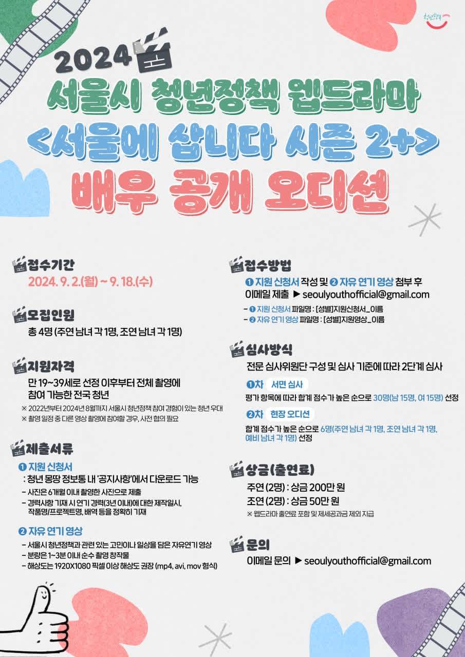 서울시가 <서울에 삽니다> 새로운 시즌에 합류할 배우를 찾는 오디션을 개최합니다 🎬