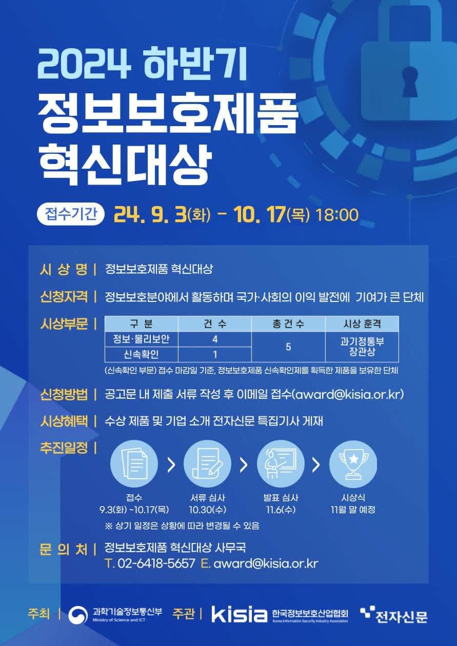총 2개 부문, 5점 시상(정보·물리보안 4점, 신속확인 1점)