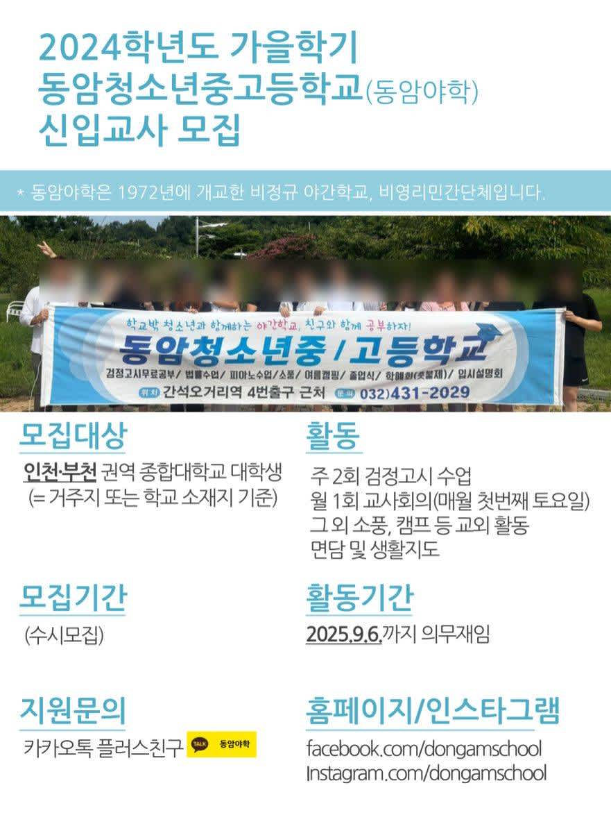[인천]청소년 지도•교육봉사 대학생 모집